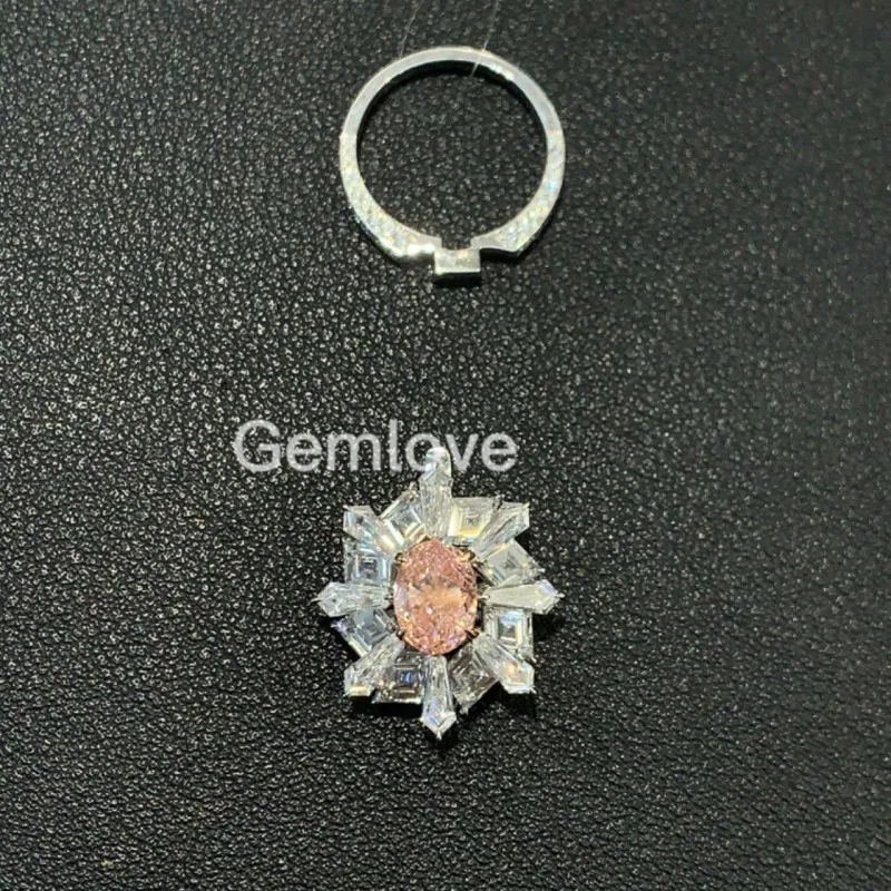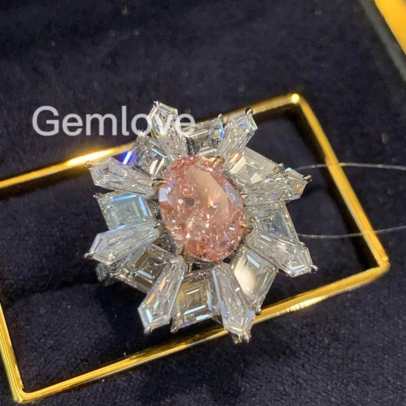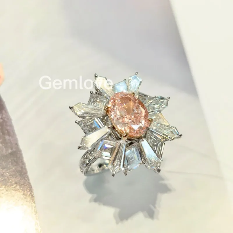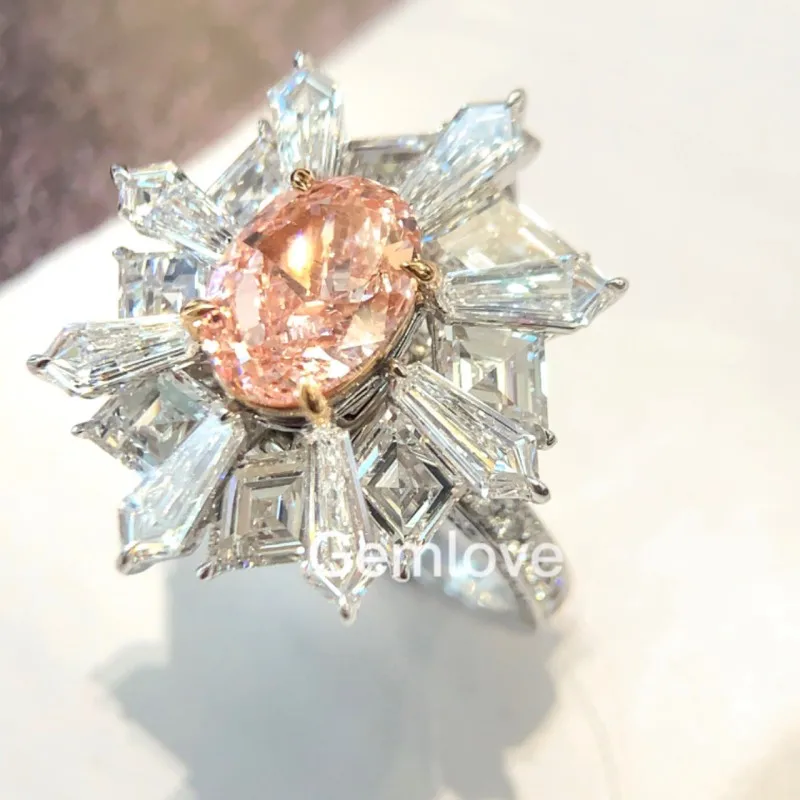 14K/18K Gold 2CT Lab-Grown Diamond Wedding Ring, 5.15CT Radiant Cut Side Stones, 7.748g GIA Certified Sakura Pink Bridal Jewelry
