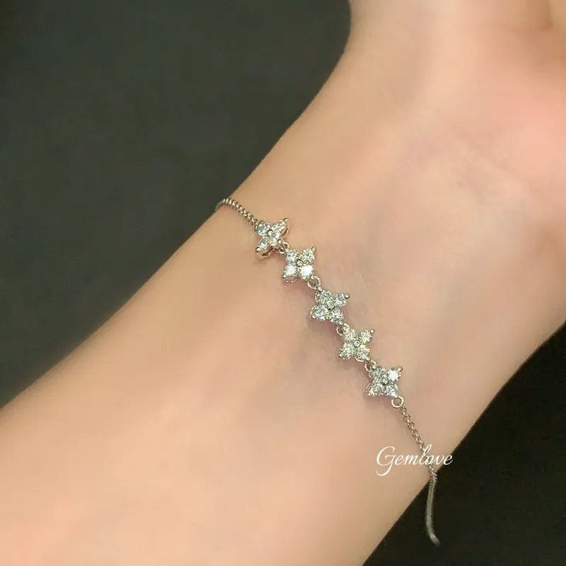 18K/14K White Gold 0.53CT Lab-Grown Diamond Half Eternity Bracelet, 1.66g Dainty Everyday Jewelry, Gift for Her