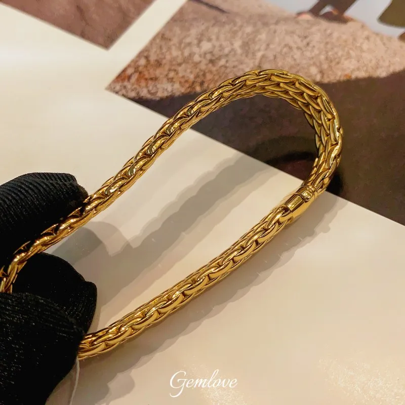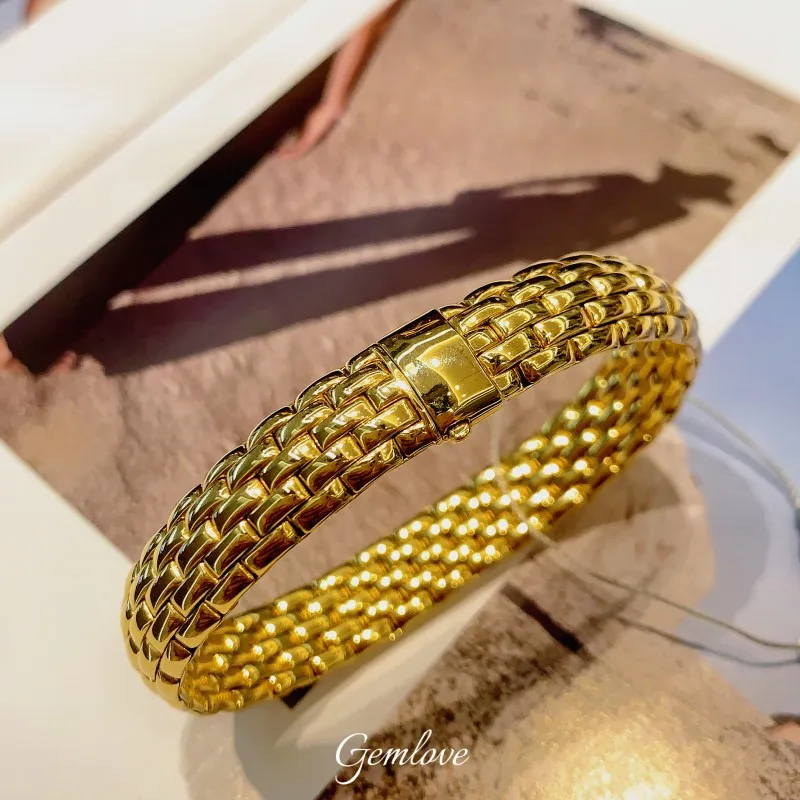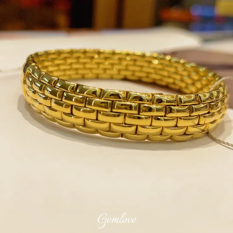 14K/18K Gold 6mm/20mm Bezel-Set Motorcycle Bracelet, 22.67g Elastic Cuff, Unisex Luxury Jewelry
