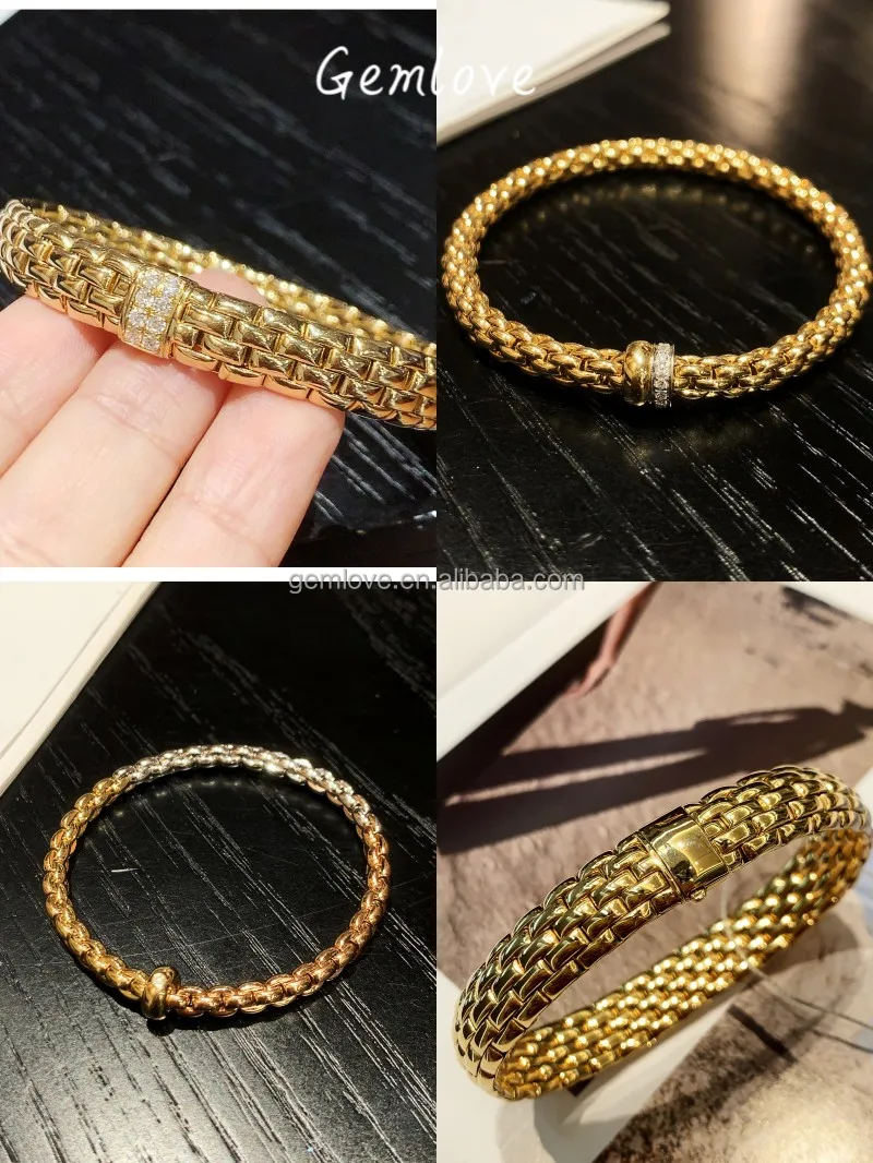 9K/18K Gold 0.28CT Diamond Stretch Bracelet for Women, 7.49g Elastic Bangle, Luxury Motorcycle Chain Jewelry for Gift/Daily Wear