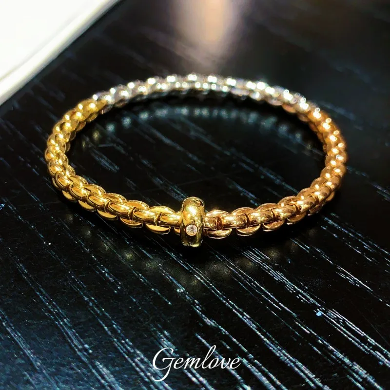 14K/18K Gold 0.023CT Lab-Grown Diamond Motorcycle Bracelet, 12.37g 3mm Width, Stackable Unisex Everyday Jewelry