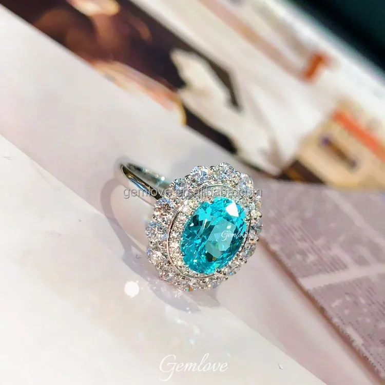In Stock! 3.15CT IGI Paraiba Ring - PT950 Round Lab Diamond, Luxury Engagement Jewelry
