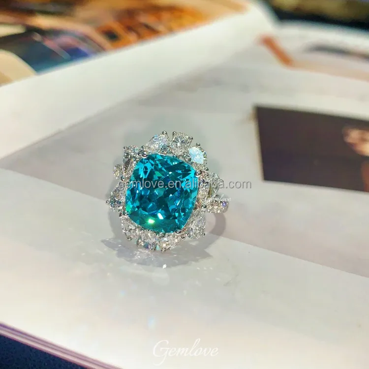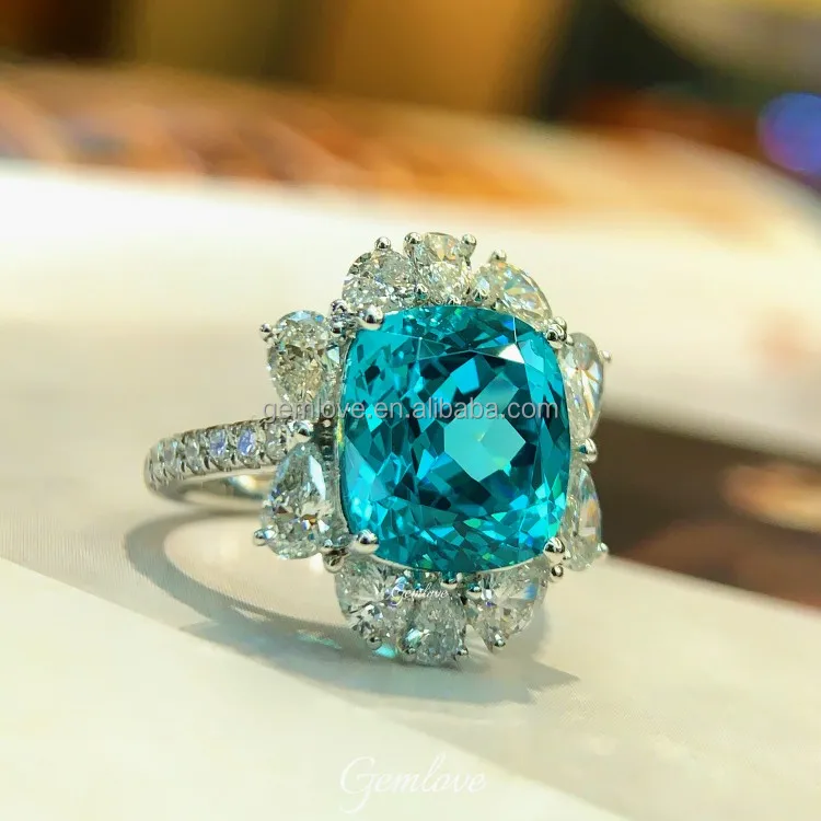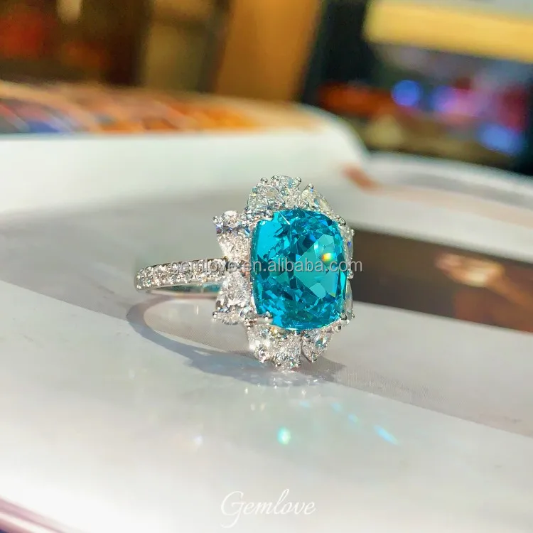 In Stock! 8.92ct PT950 Paraiba Ring - Oval Lab Diamond, Luxury Wedding Jewelry for Women