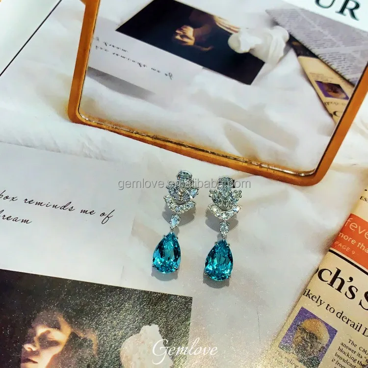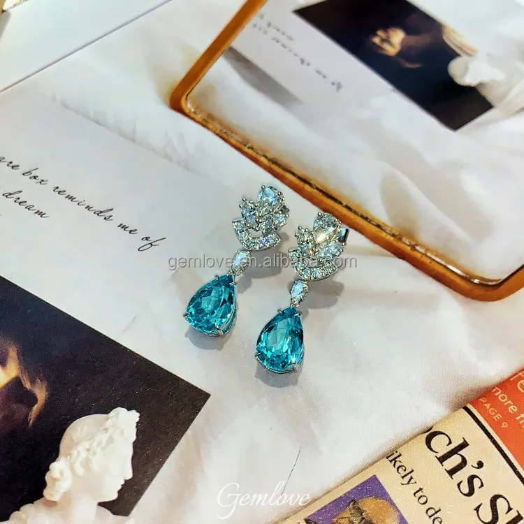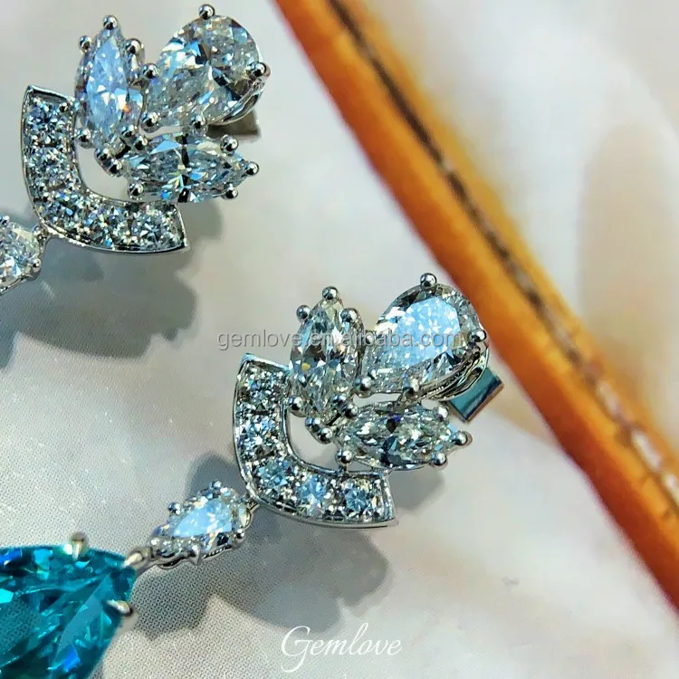 Ready-to-ship10.995ct PT950 Paraiba Stud Earrings - CVD Lab Diamond, Classic Wedding Jewelry