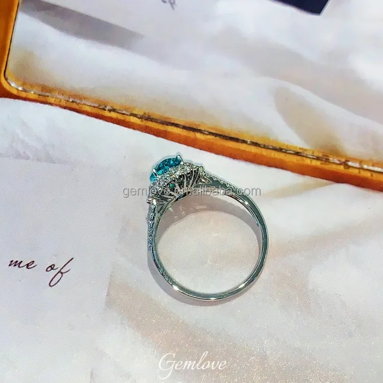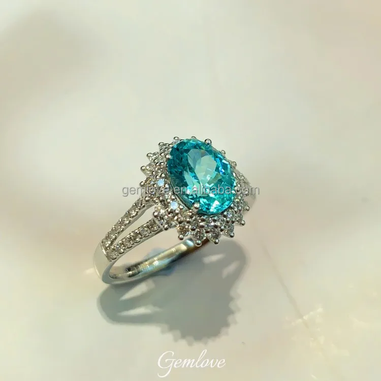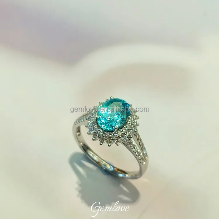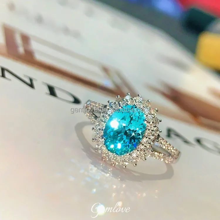 In Stock! 2.3ct PT950 Lab Paraiba Ring - Oval 8x6.8mm Sunflower Design, Women's Fashion Jewelry