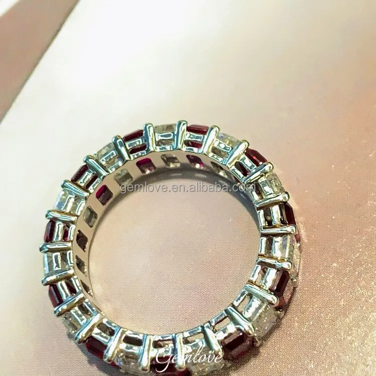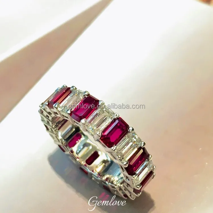 In Stock! PT950 Lab Ruby Ring - Emerald Cut, Unisex Wedding Band, Gift Ready