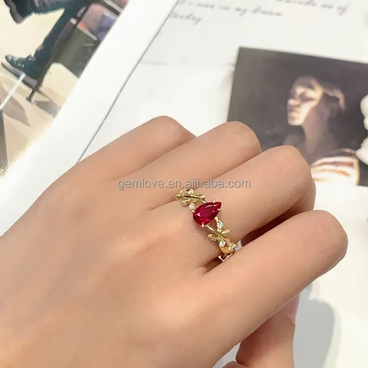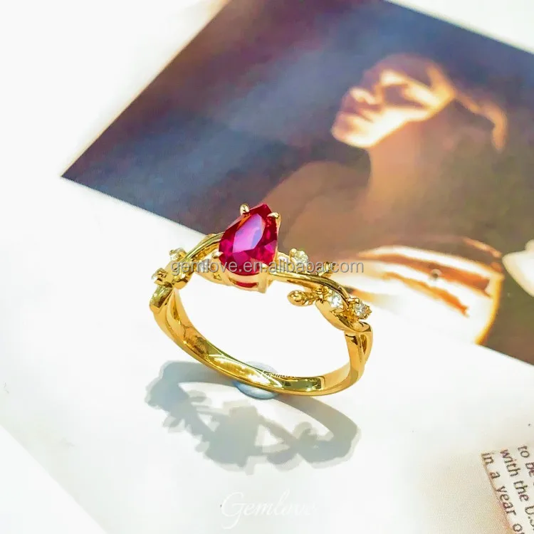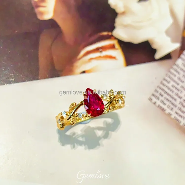In Stock! 9K/14K/18K Gold/Platinum Ring - 1.5ct Red Lab Diamond, Pear Cut, Ready to Ship