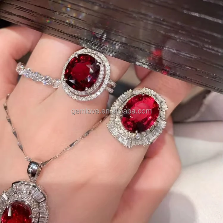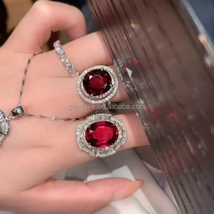 Luxury 9K/18K Gold Gemstone Set - 5.46ct Tourmaline Pendant, 8.28ct Garnet Wedding Ring & 6.65ct Tourmaline Bridal Ring