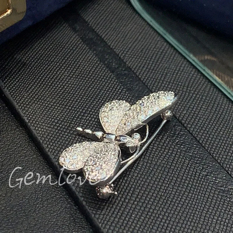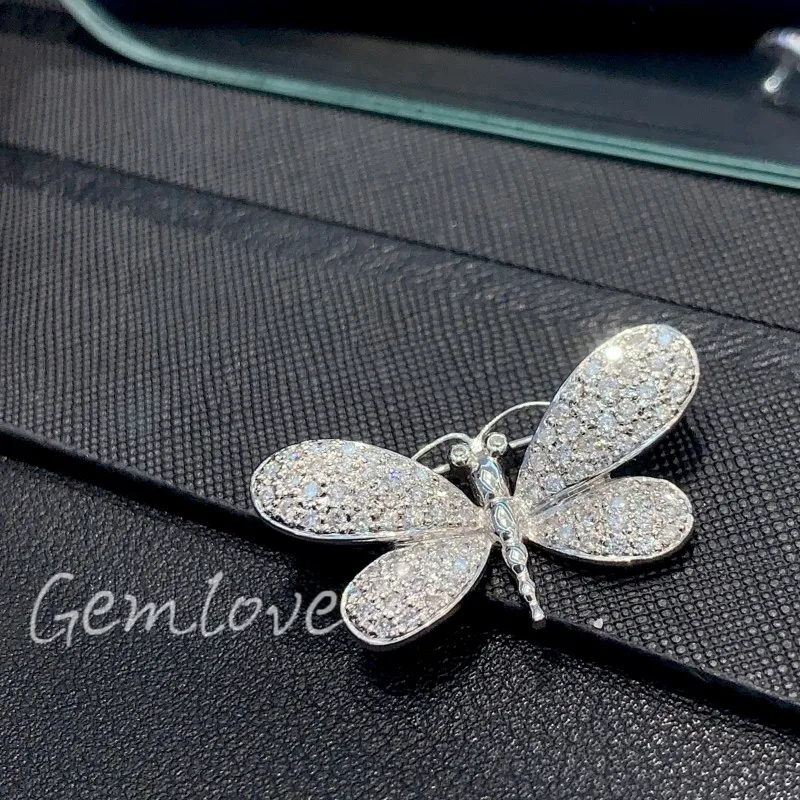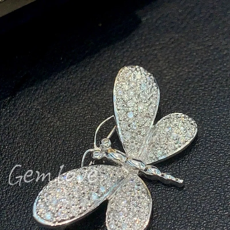 9K-18K Gold Butterfly Brooch for Women, Full Lab-Grown Diamond Inlay, Elegant Floral Pin, Custom Jewelry Gift