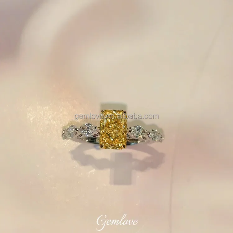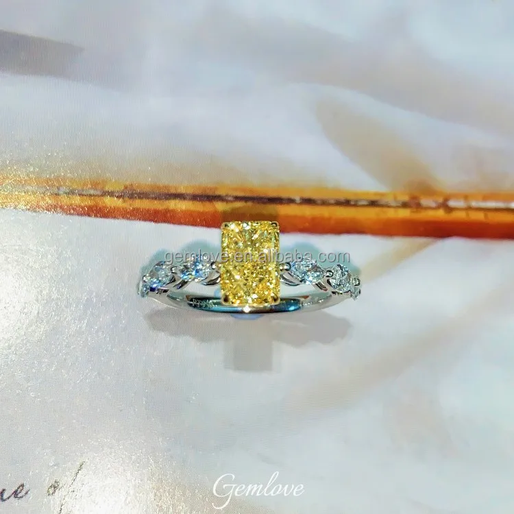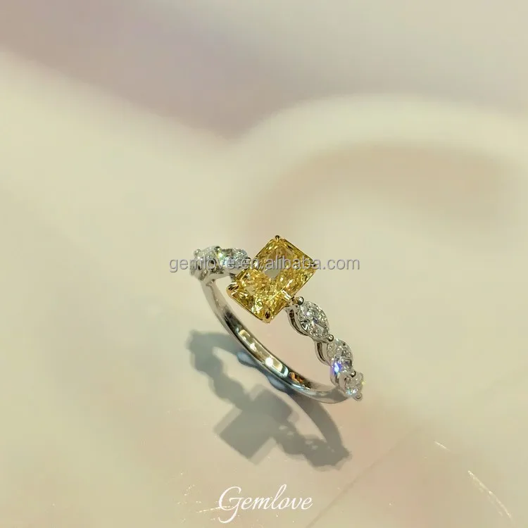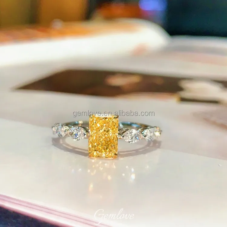 Instarsgem 1.24CT Radiant Yellow Lab Diamond Ring - PT950/18K, Anniversary Band with Accents