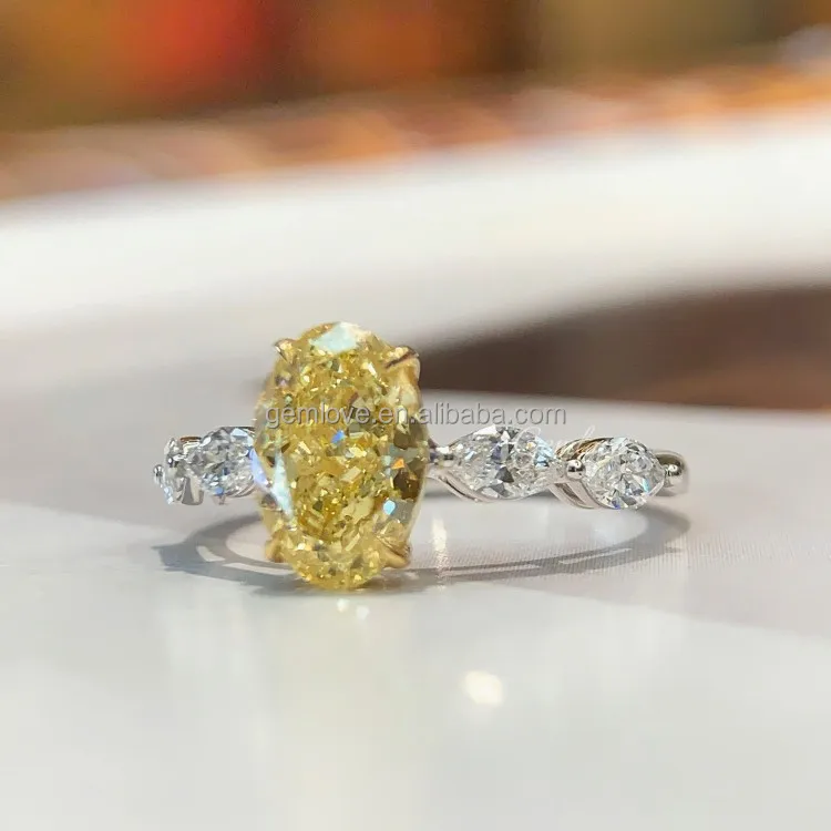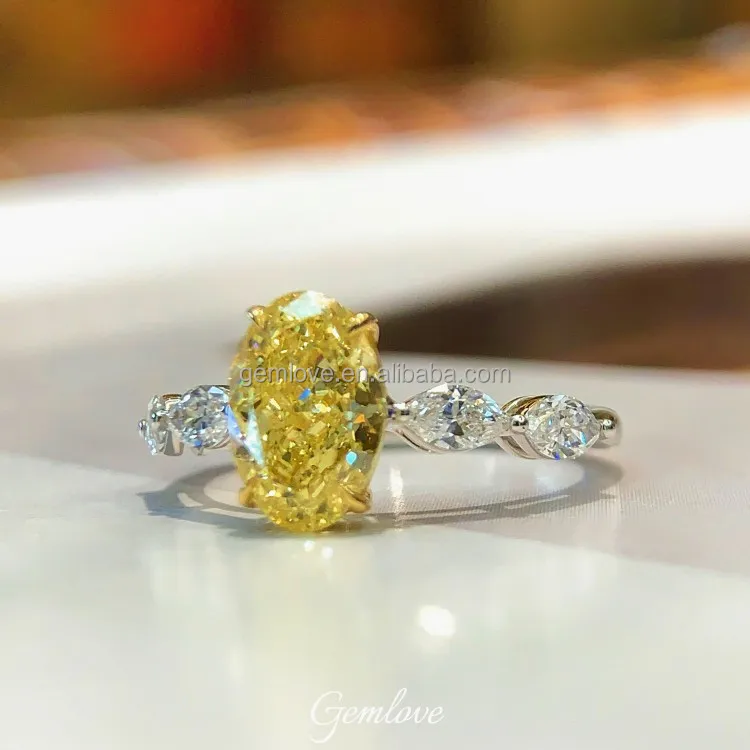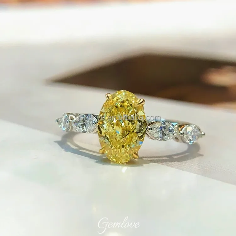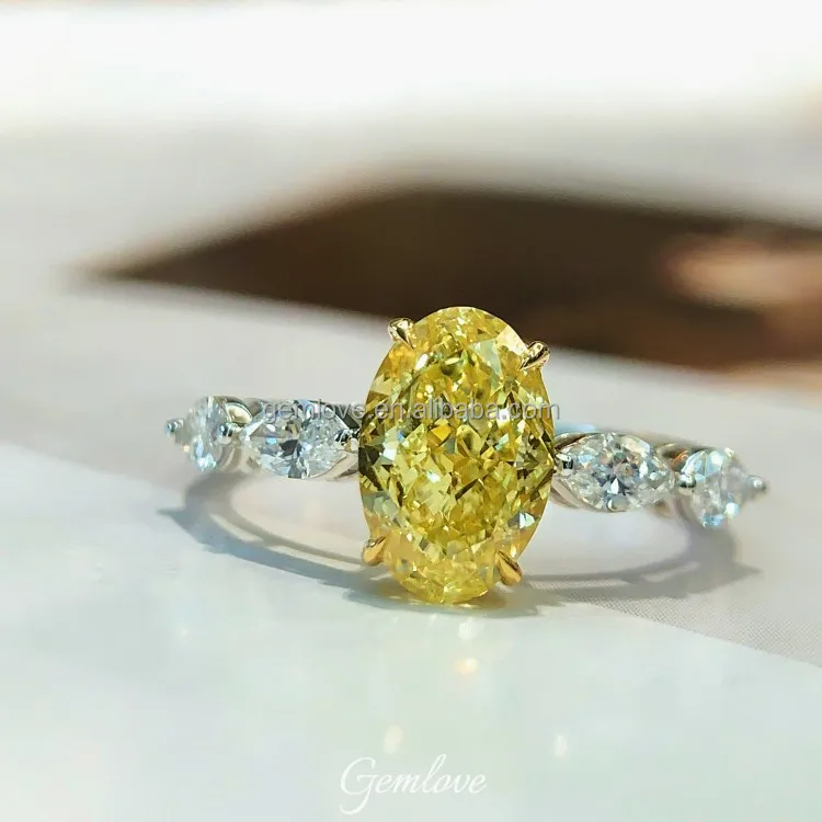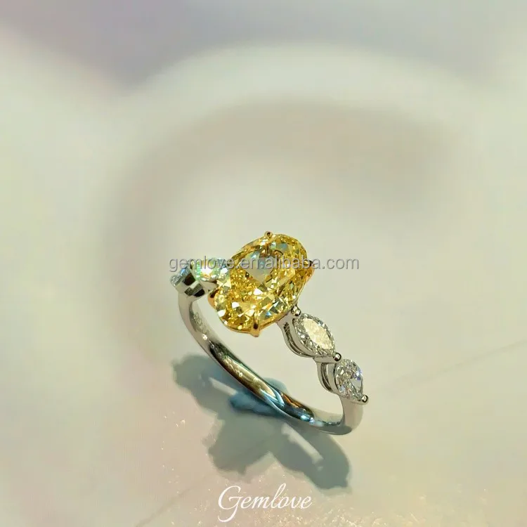 In Stock! 1.896CT Oval Yellow Lab Diamond Ring - PT950/18K, IGI Certified Engagement Jewelry