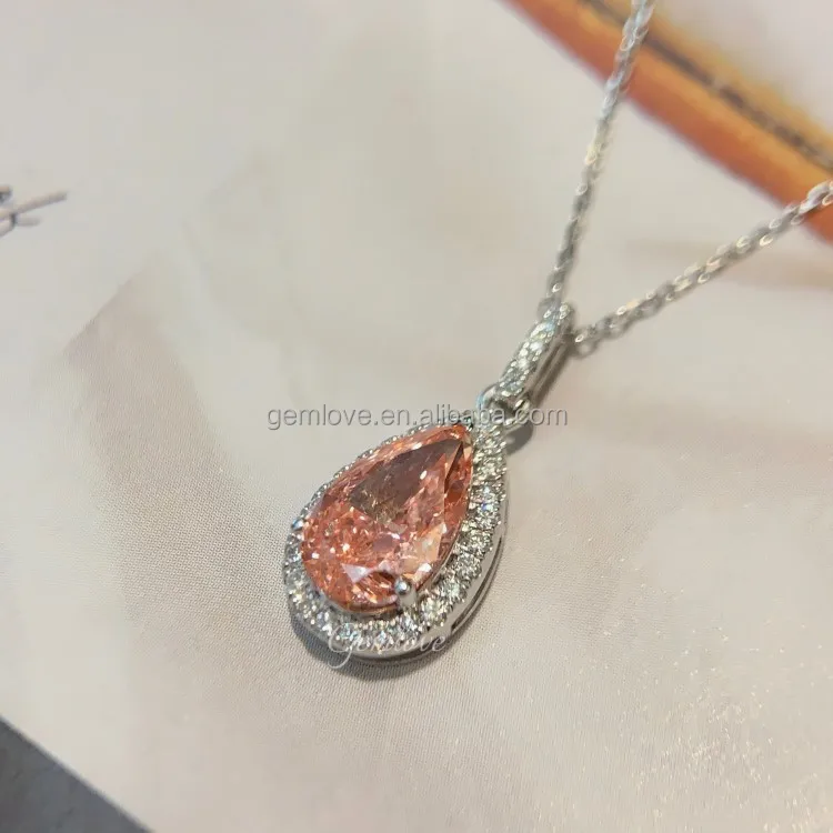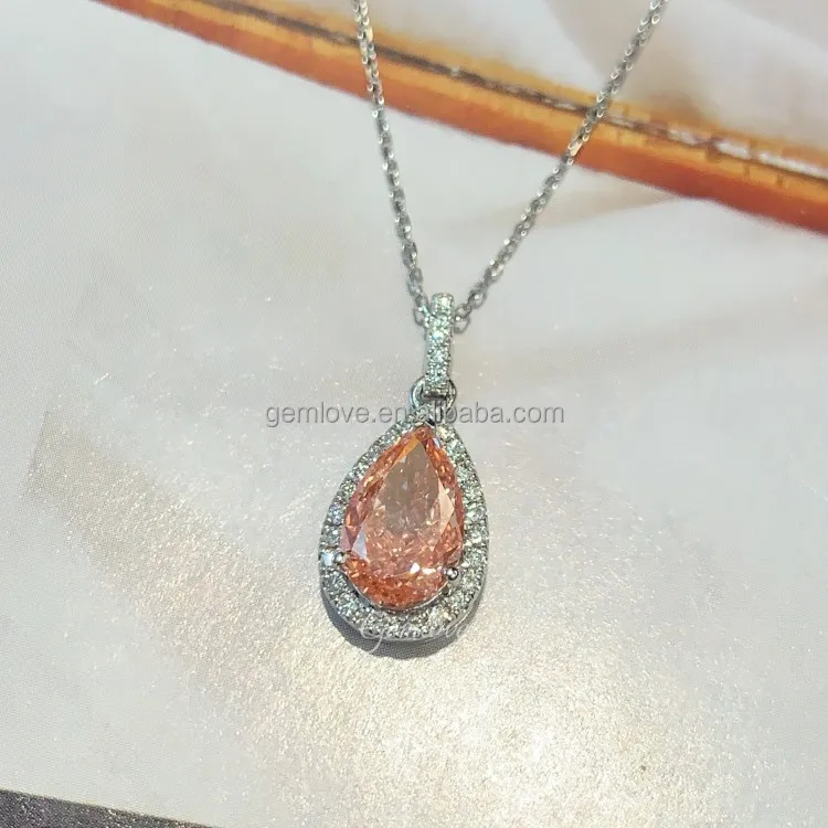 Bestseller 2.32CT Pear Pink Lab Diamond Necklace - PT950 White Gold Women's Luxury Jewelry