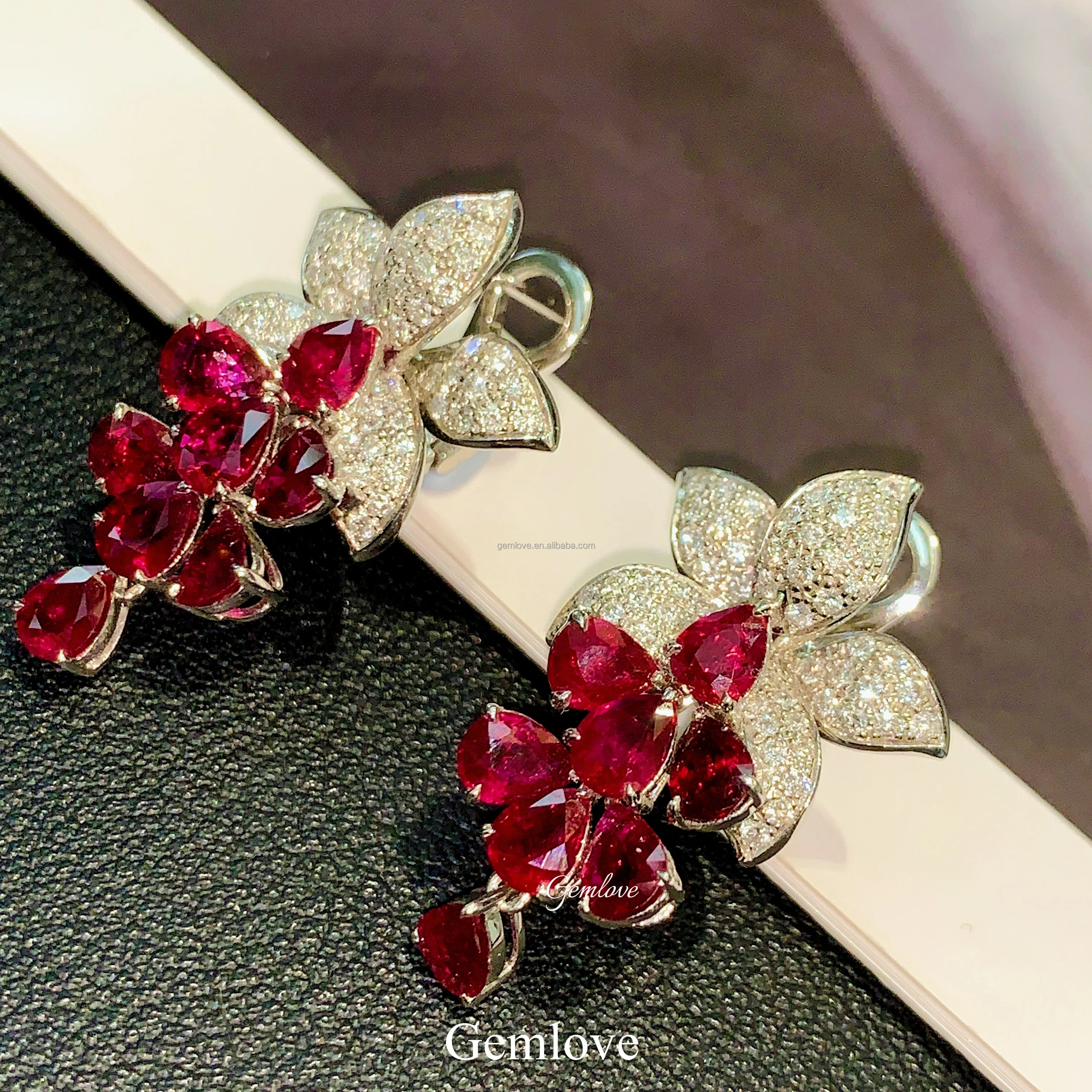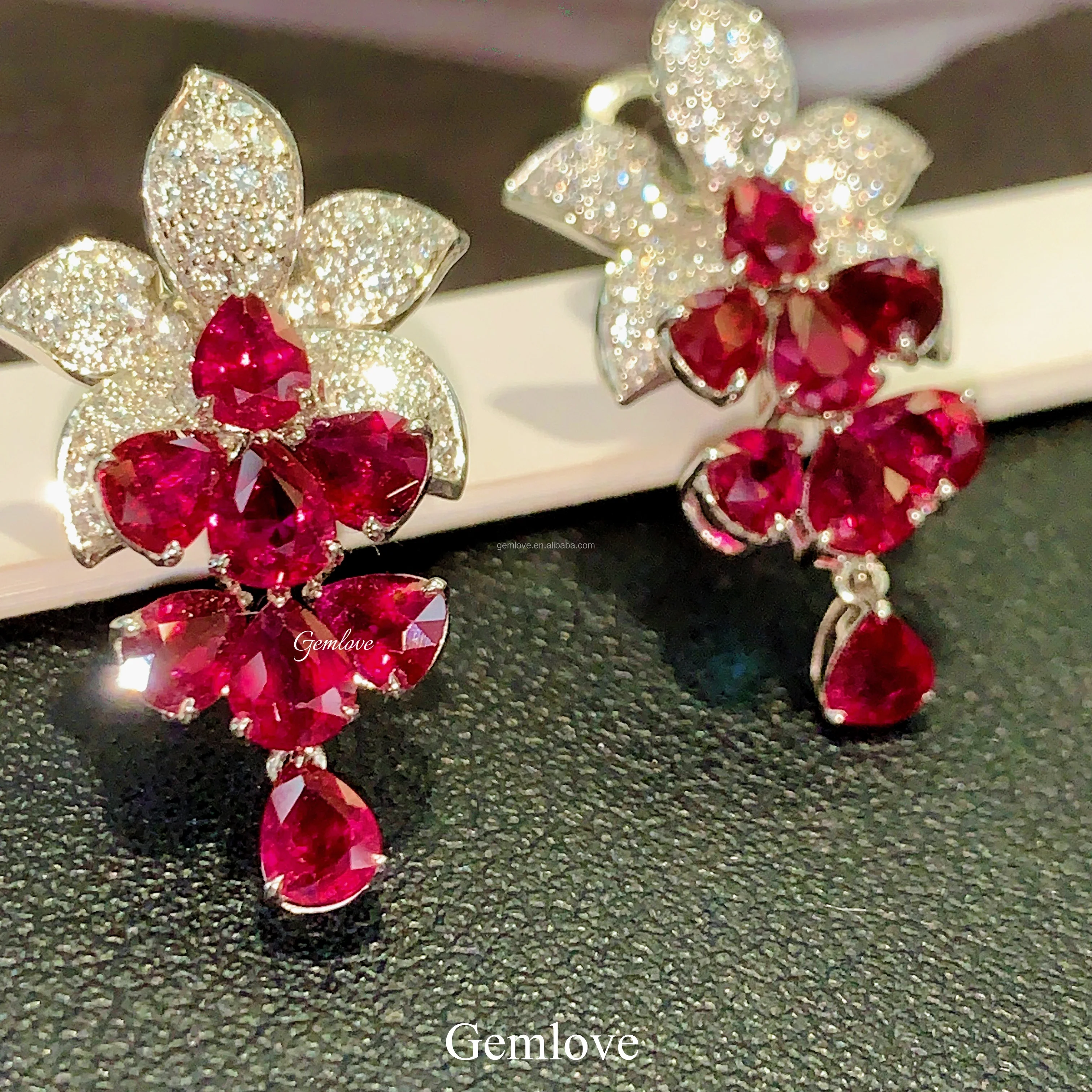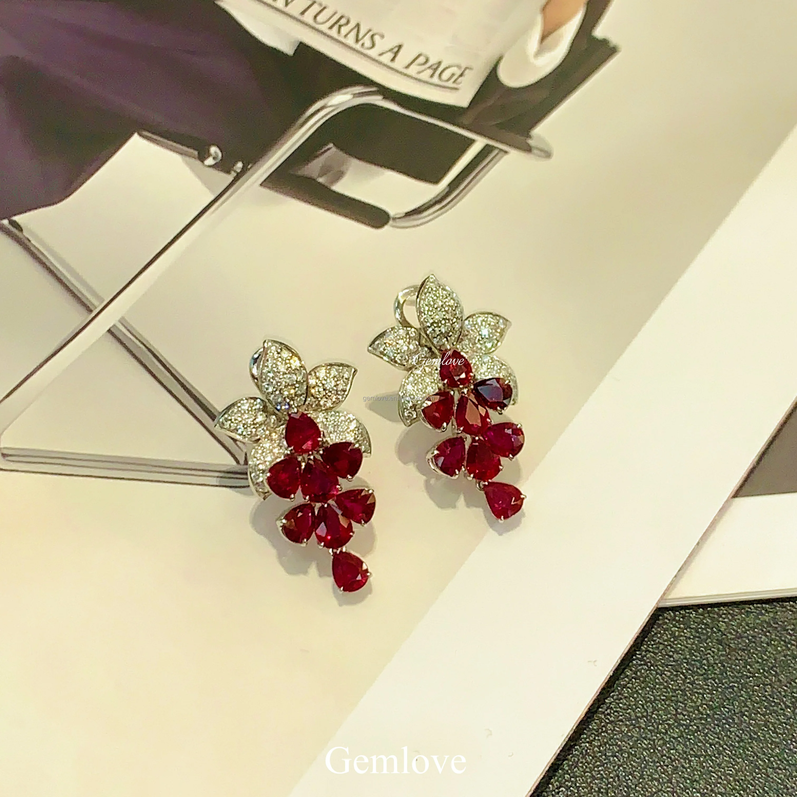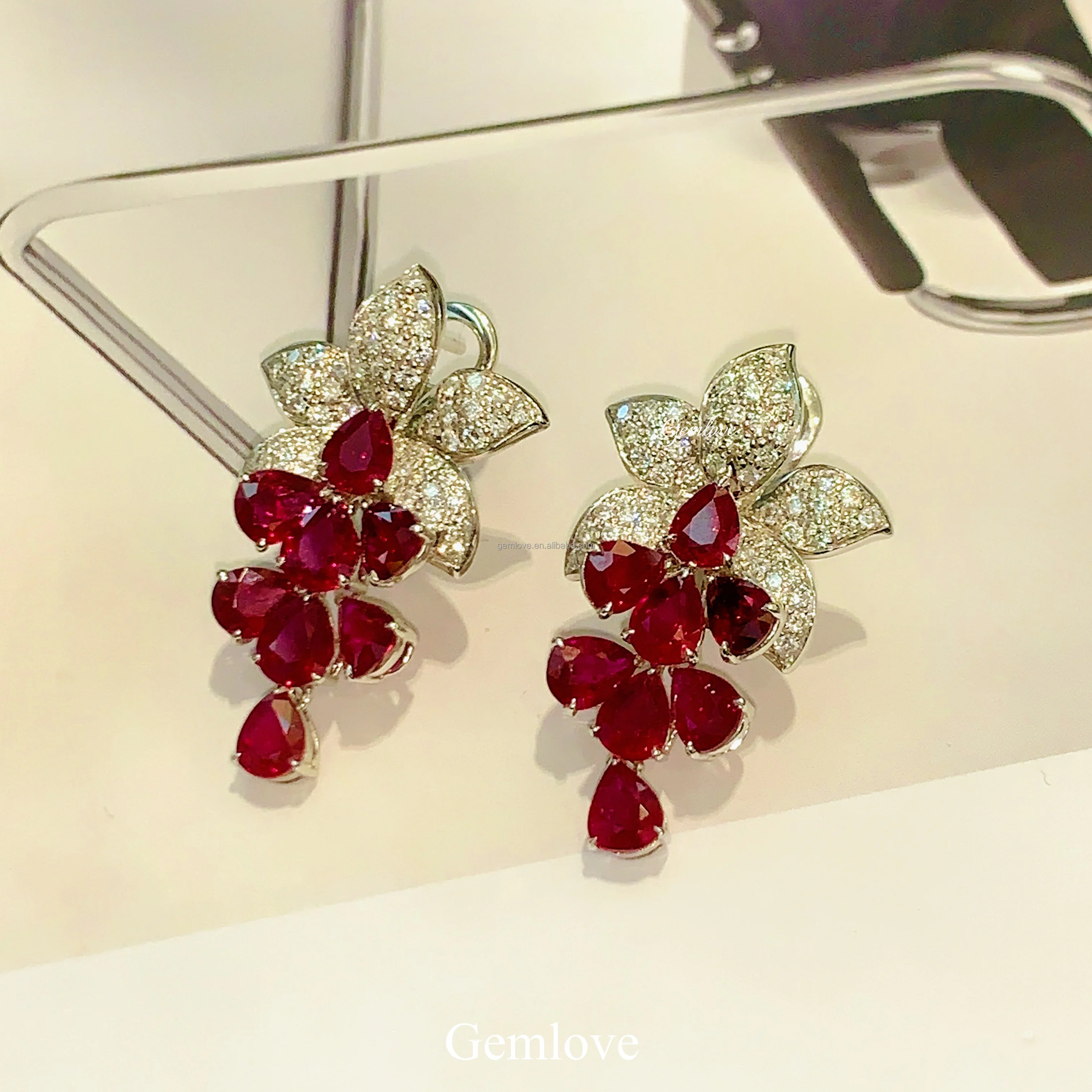 GEMLOVE 6.292CT Ruby & Lab Diamond Earrings - 14K/18K Gold Dubai Luxury Bridal Jewelry