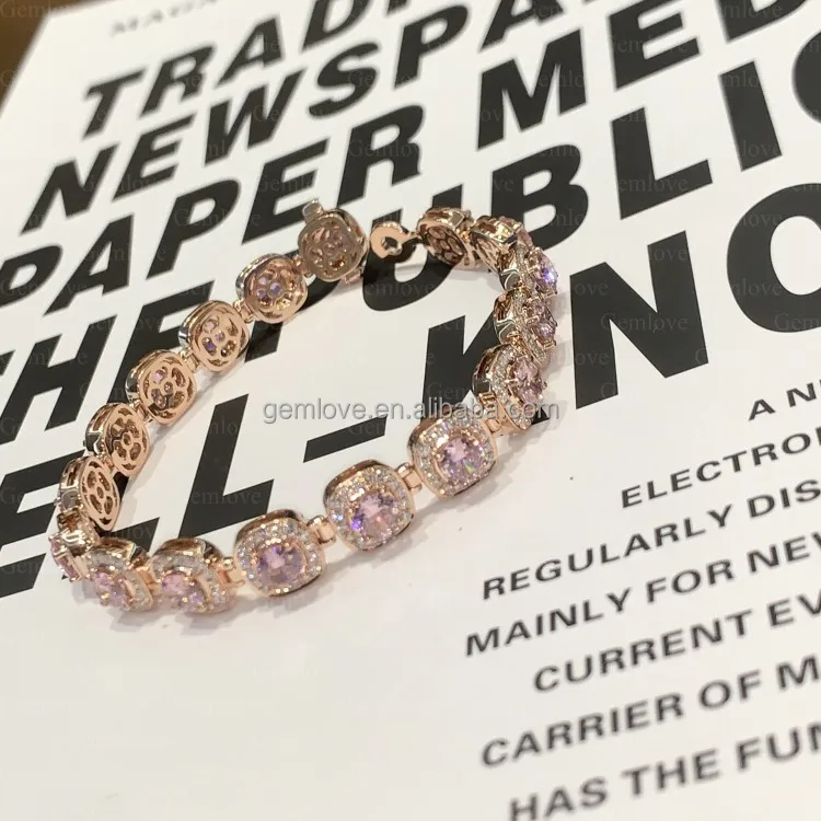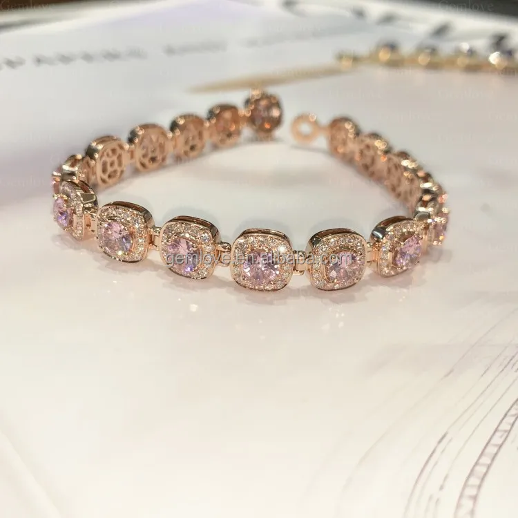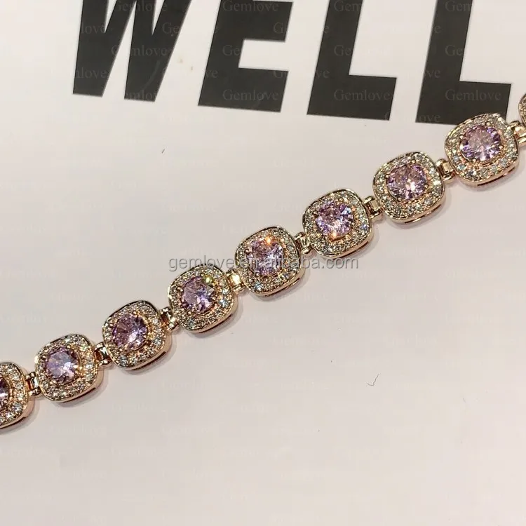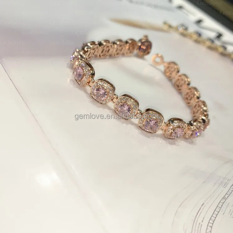 GEMLOVE Icy Pink Lab Diamond Heart Bracelet - 14K/18K Gold Unisex Rap Jewelry OEM/ODM