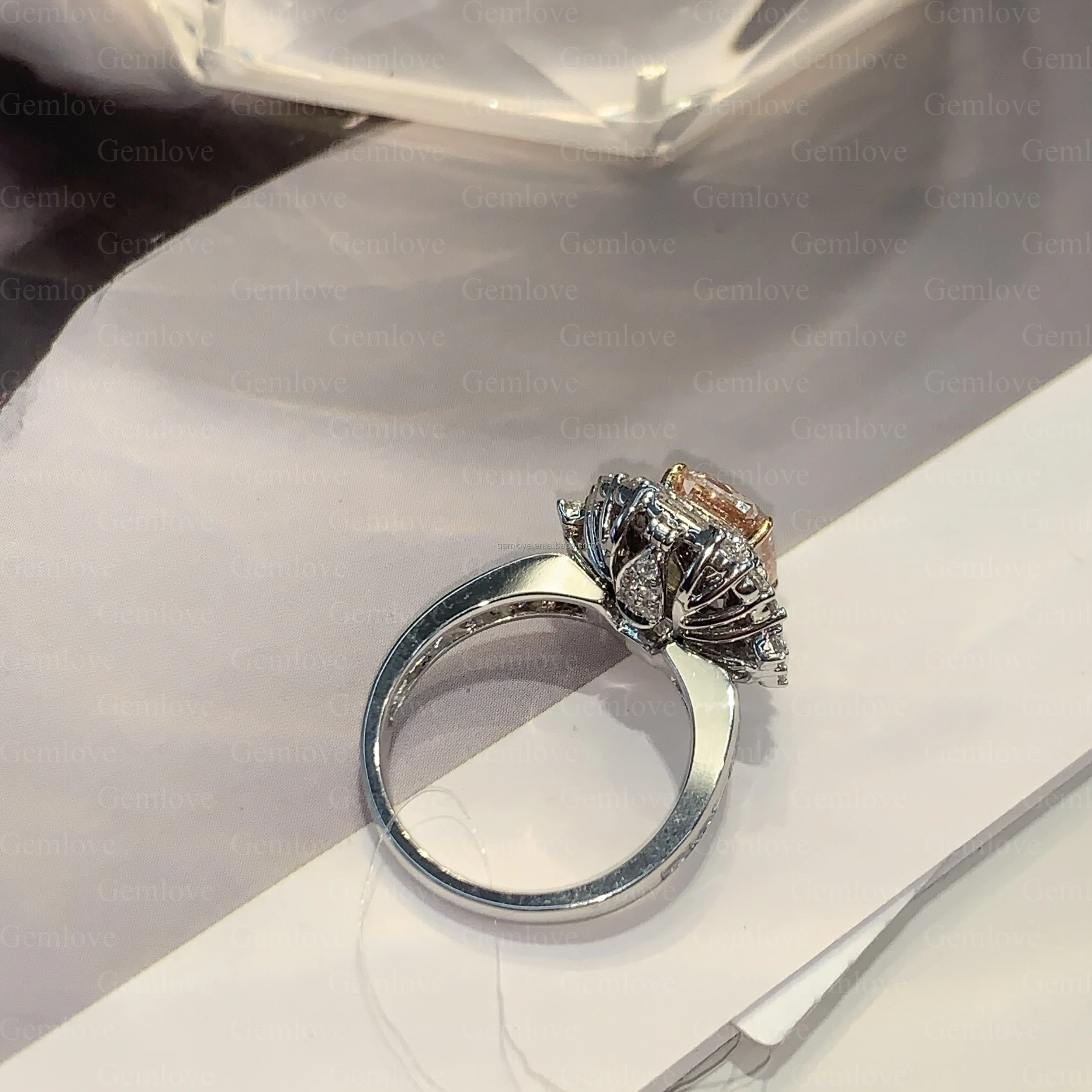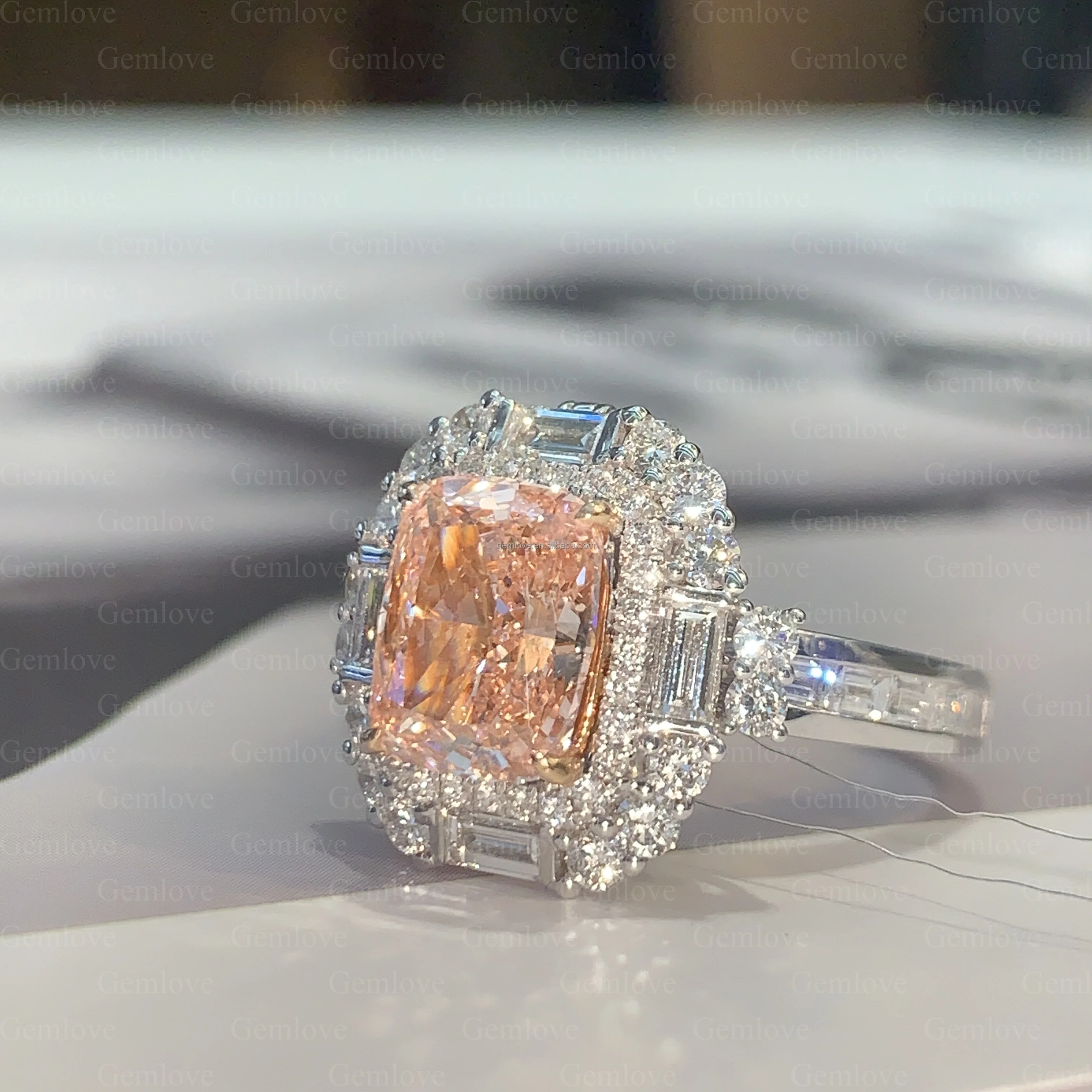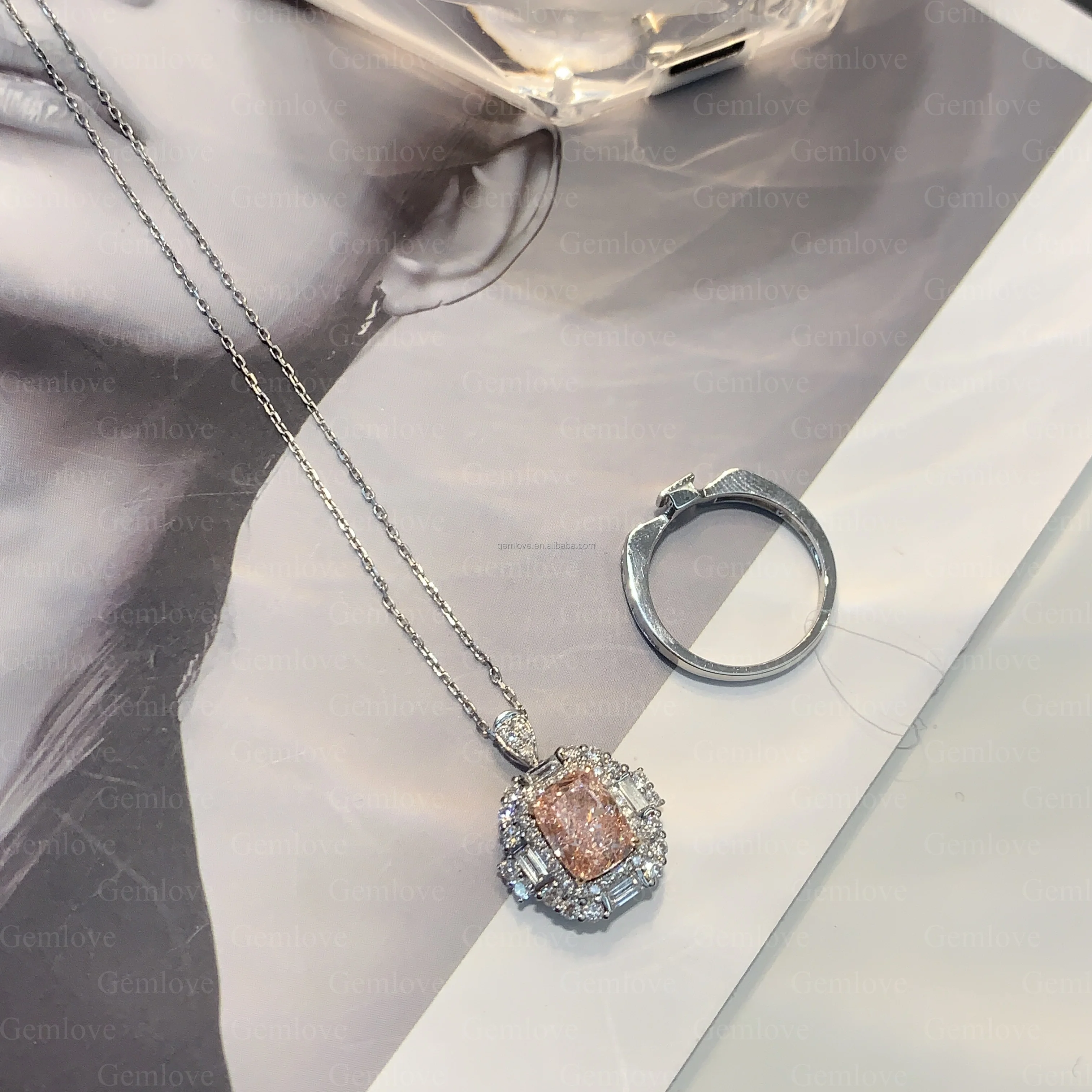 GEMLOVE Luxury 9K-18K Gold CVD Ring/Pendant - 2.7CT Radiant Pink Lab Diamond + 0.5-1CT Accents