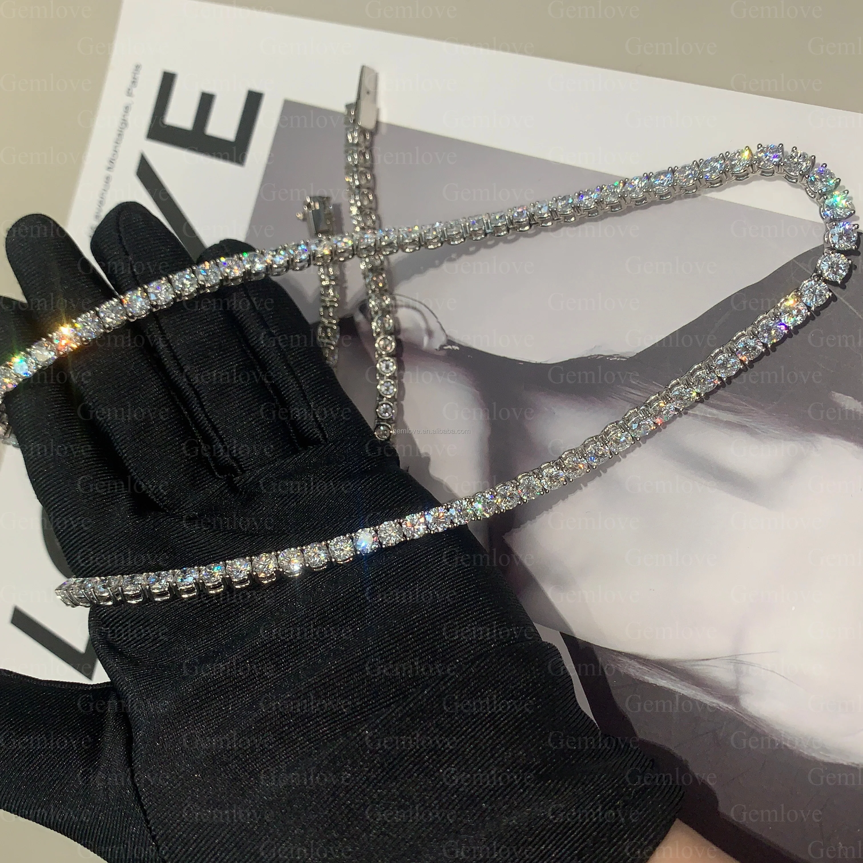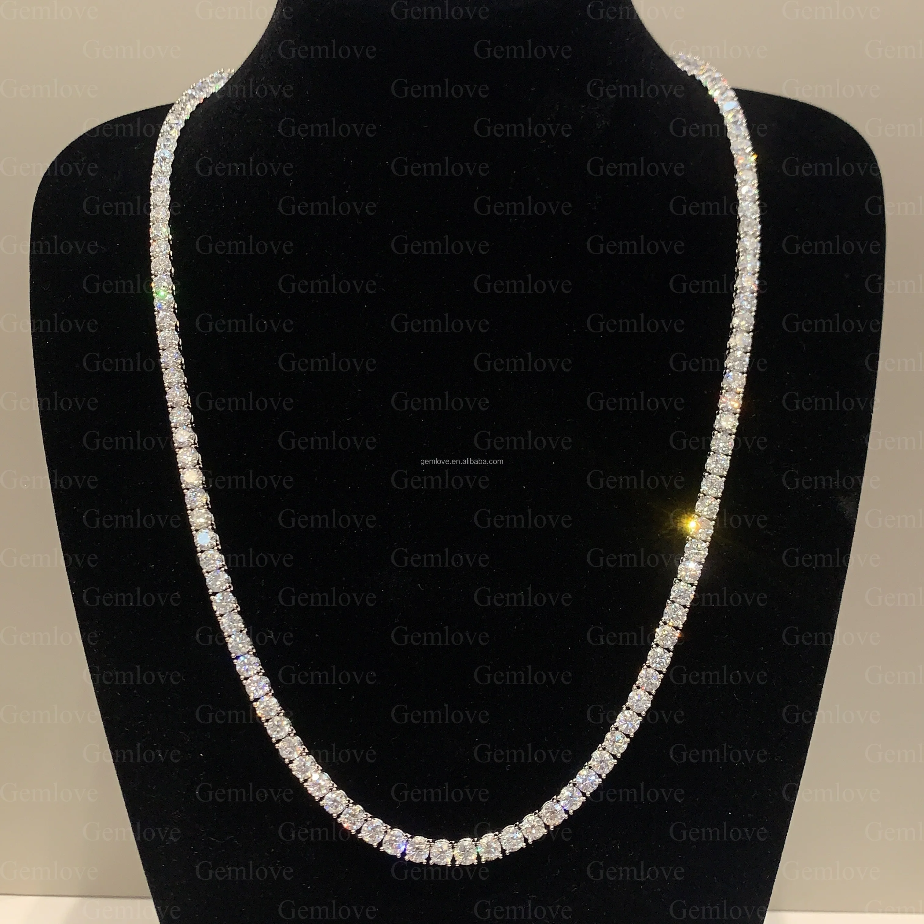 Custom 9K-18K Gold/Pt 6.946ct Iced Tennis Chain - 45cm 3-6mm Lab Diamond Hip Hop Necklace