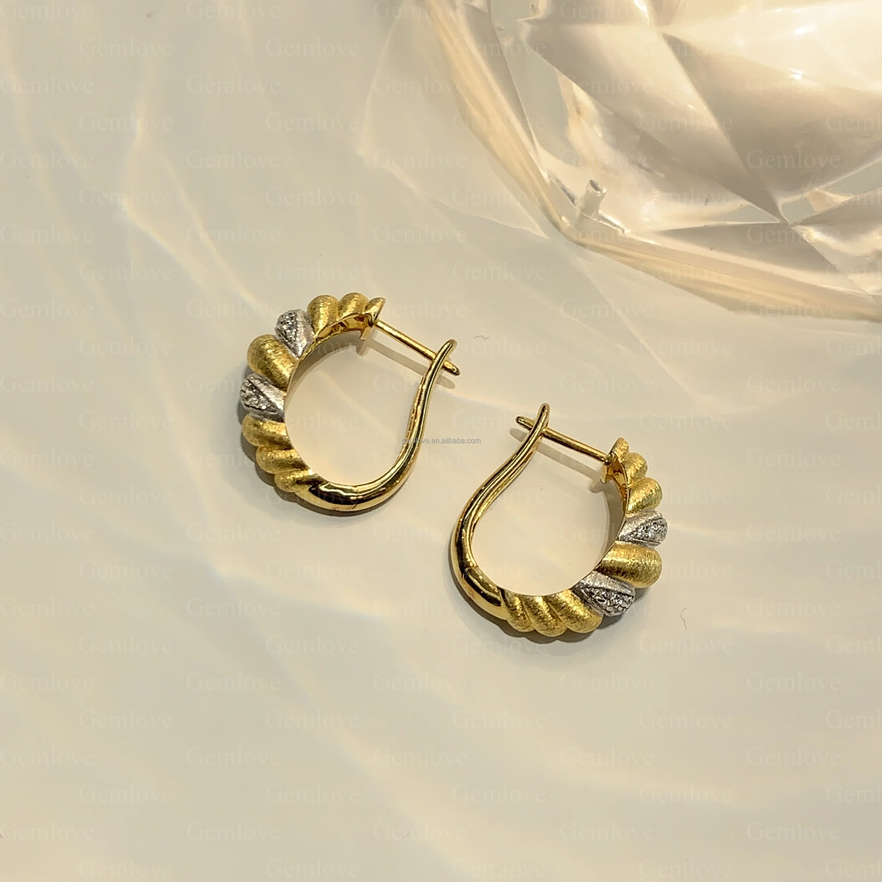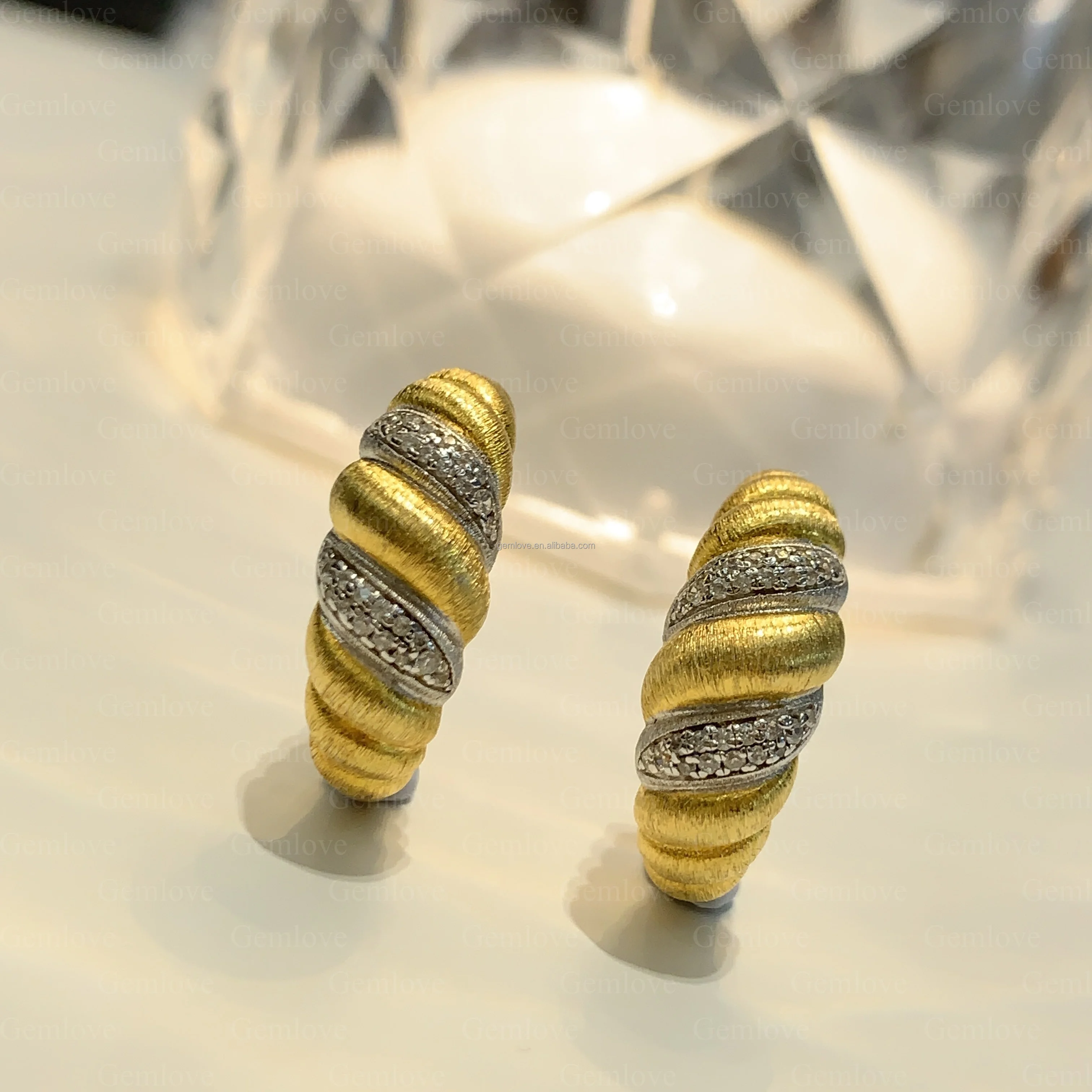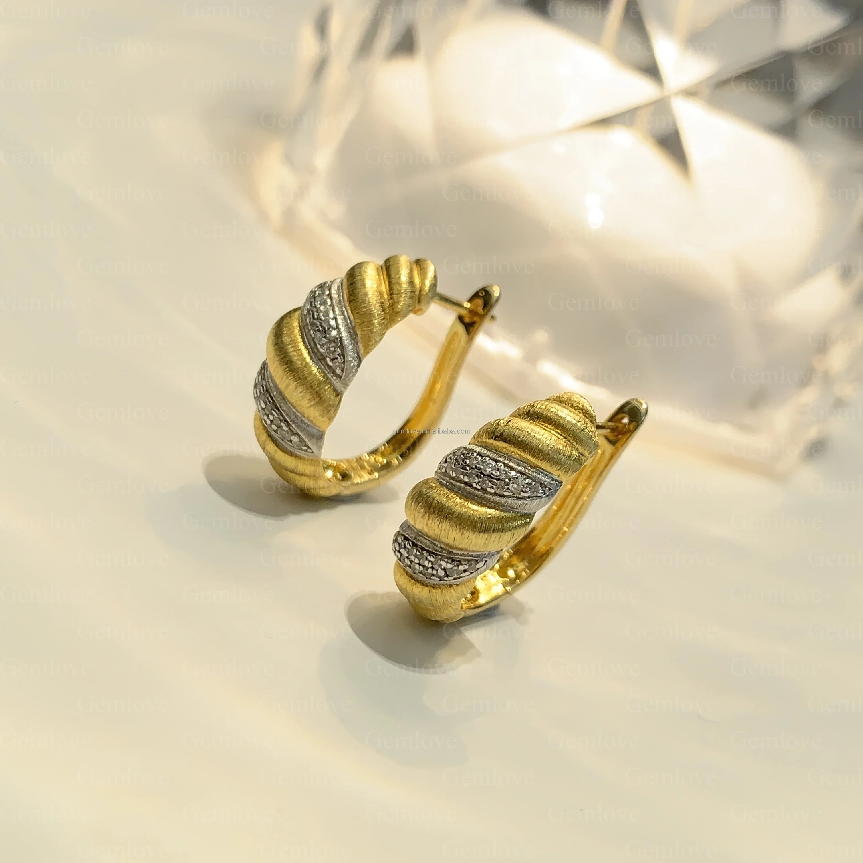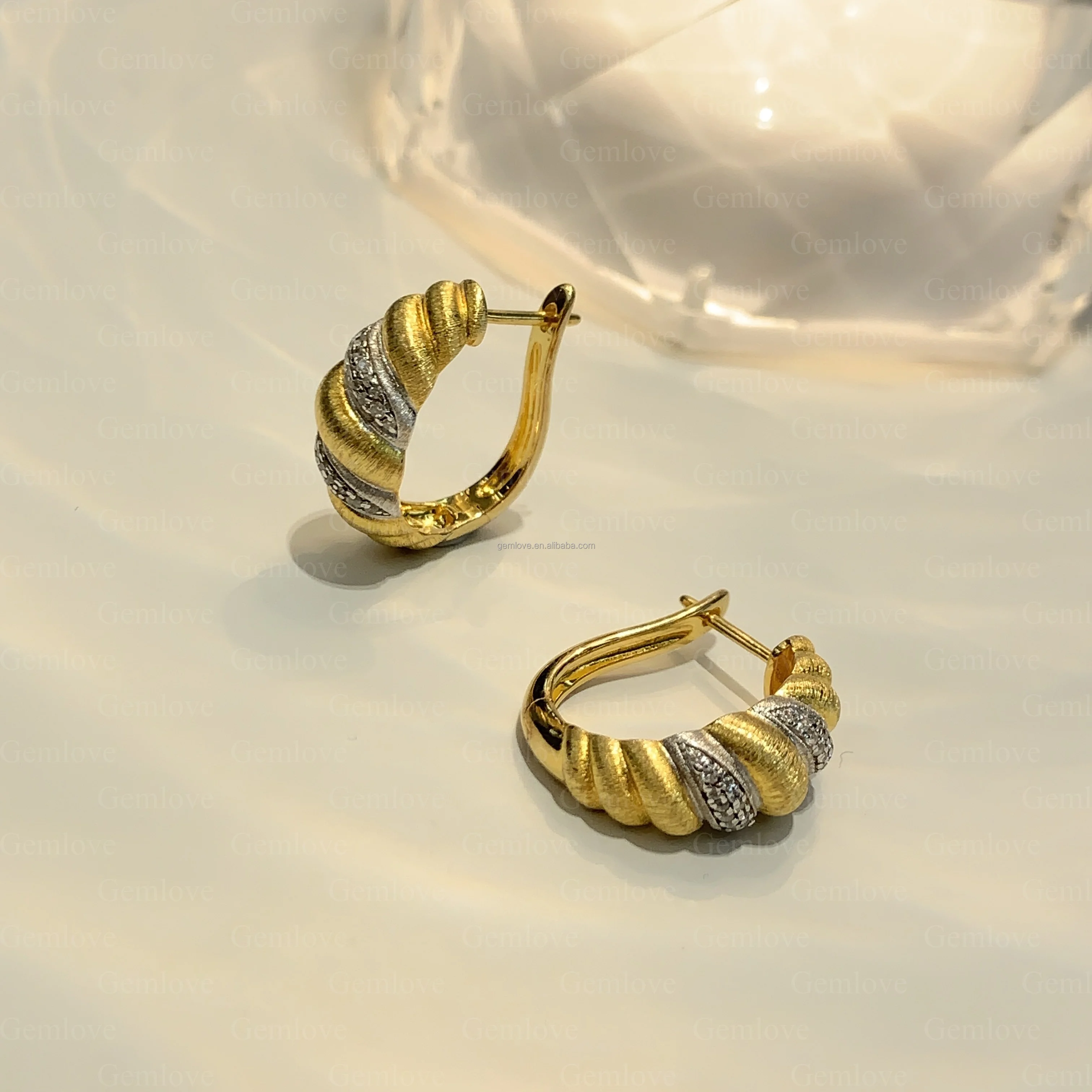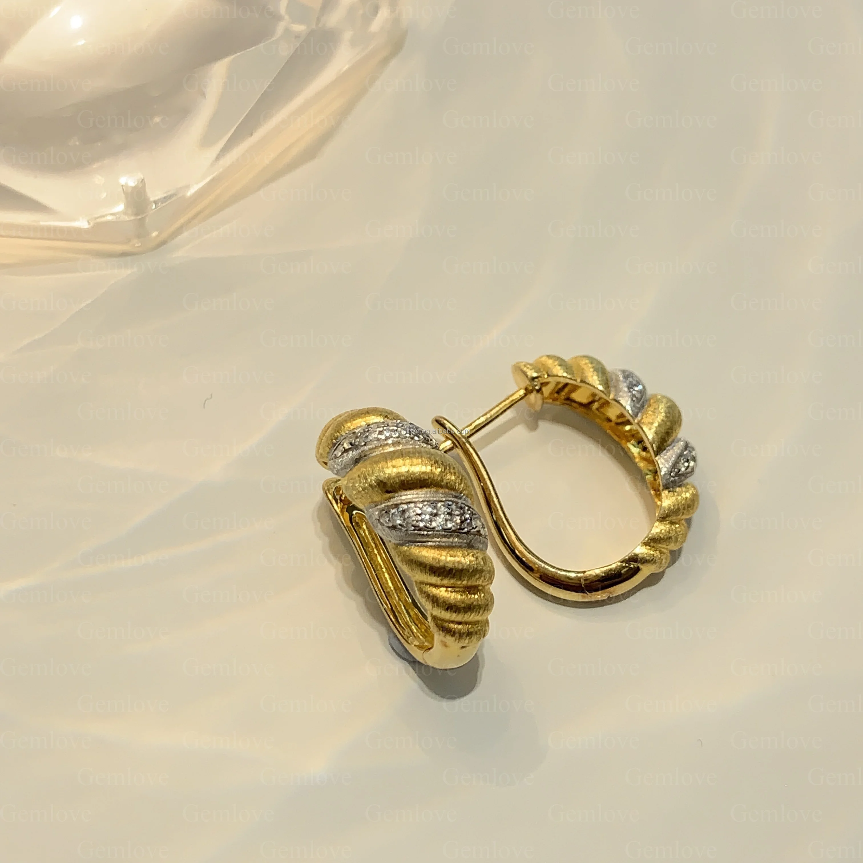 GEMLOVE Unique Sail Line Texture 18K Gold Croissant Earrings - 5.64g Brass with Lab-Grown Diamonds for Women