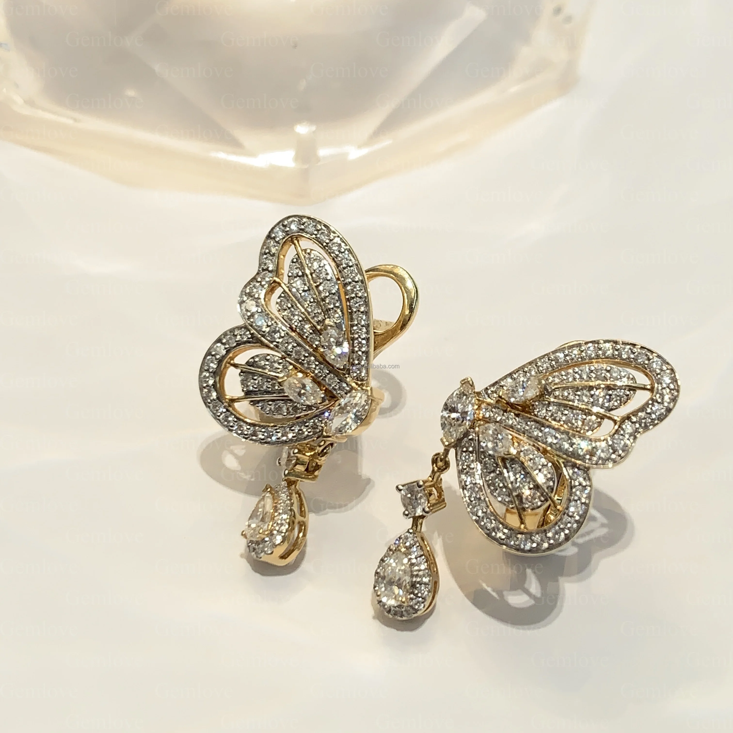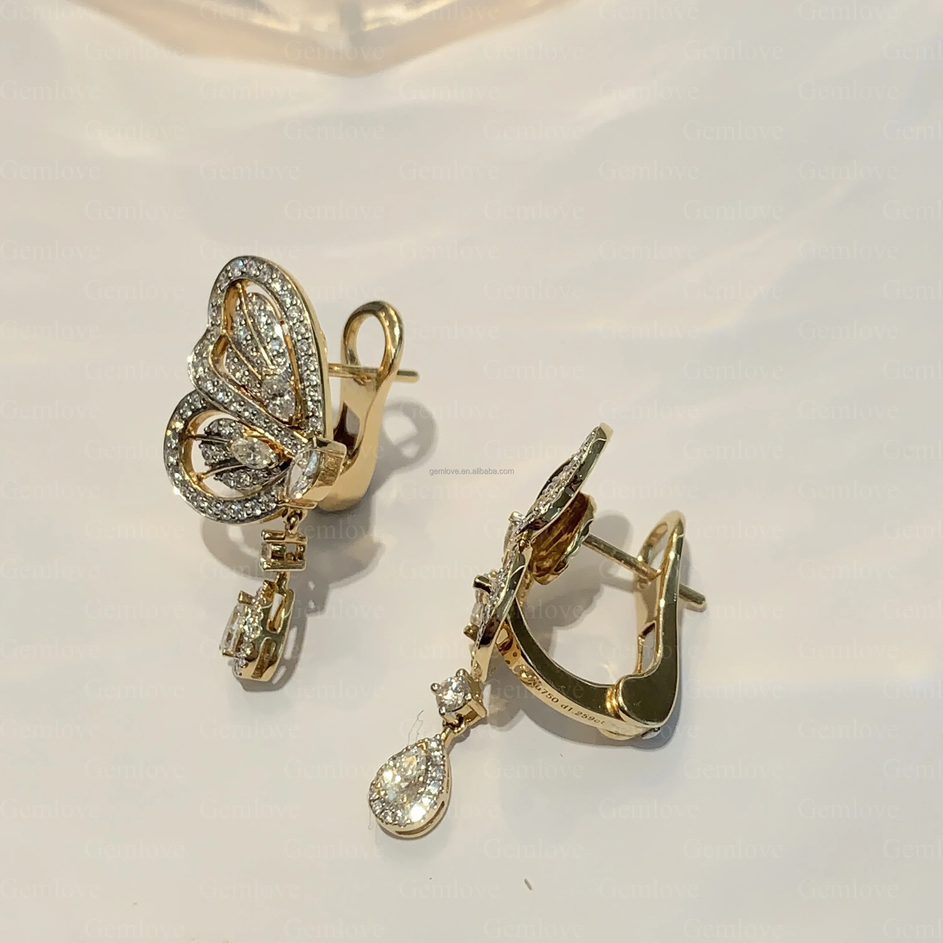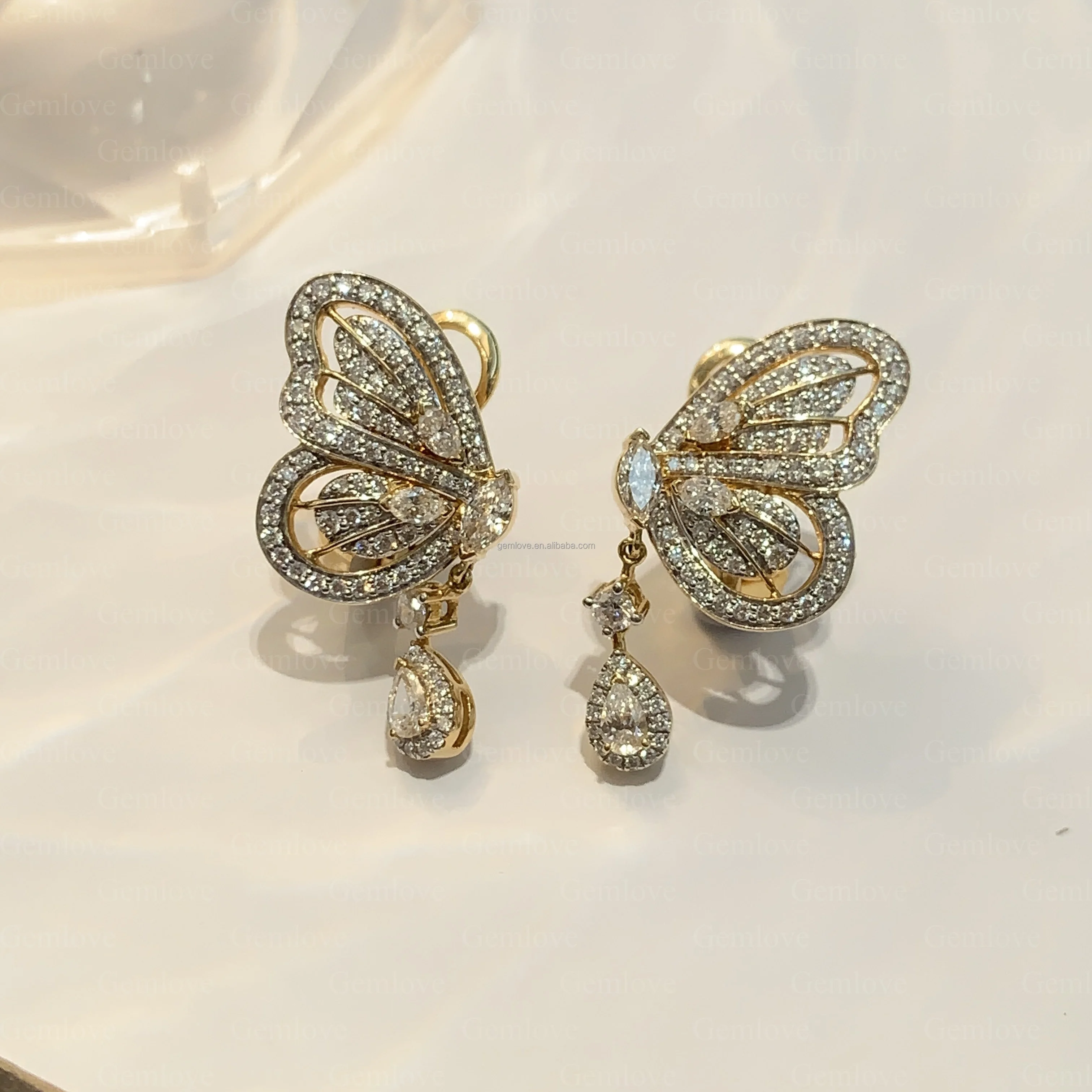 GEMLOVE Luxury 1CT Marquise-Cut Diamond Butterfly Earrings - 18K Gold 7.69g Elegant Dangle Earrings for Women