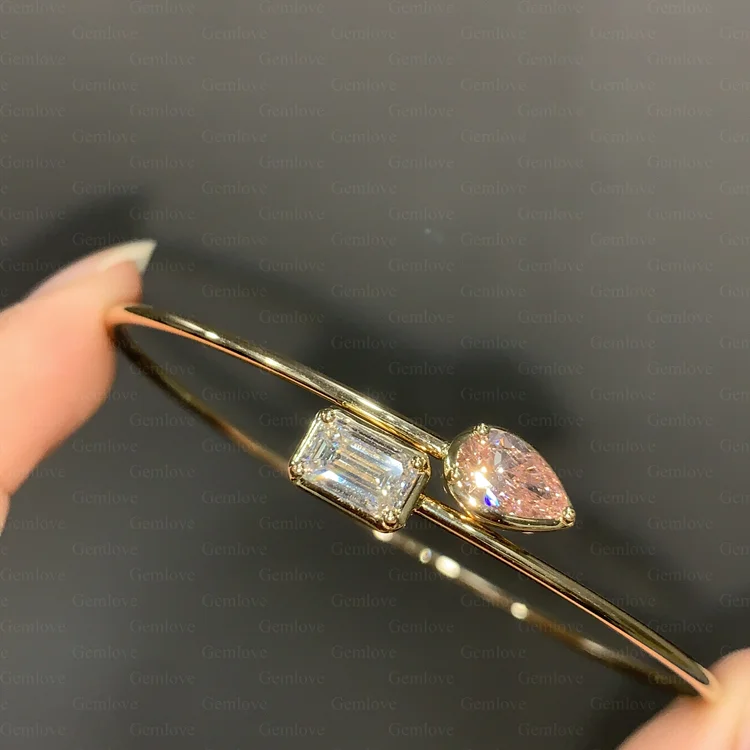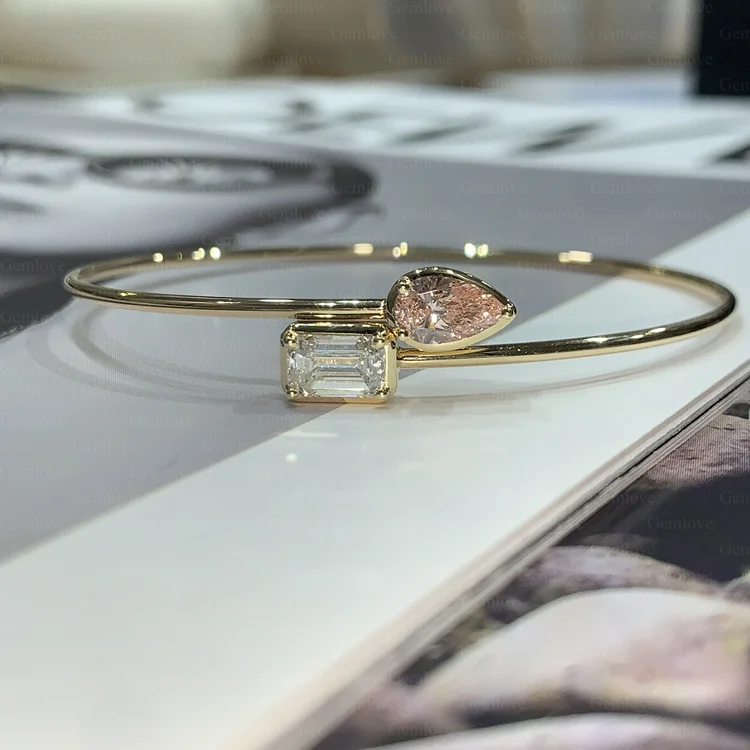 Luxury ladies' 14-carat gold bracelet, set with a 0.69-carat lab-grown diamond featuring an emerald-cut finish Party wear