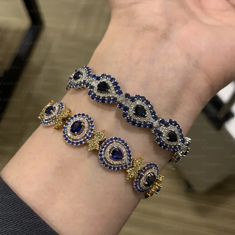 18-carat gold ladies' Combination Bracelet featuring 7.7 carats of lab-grown pear-shaped and round-cut diamonds