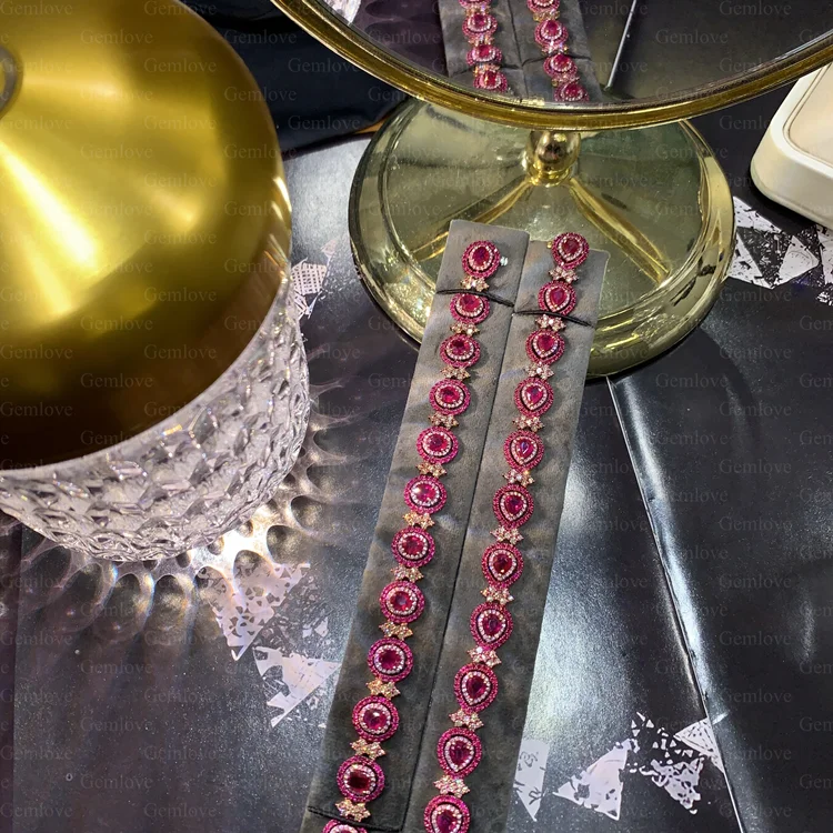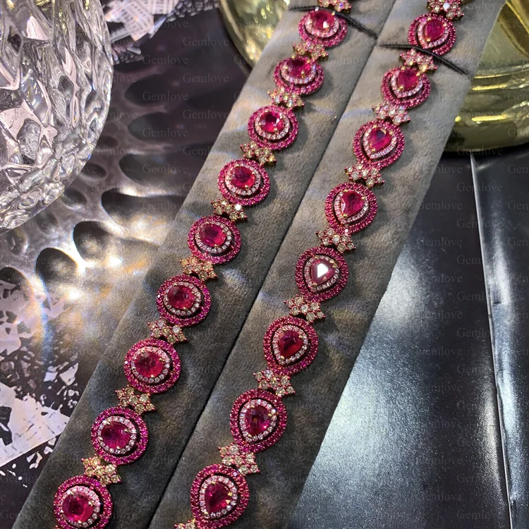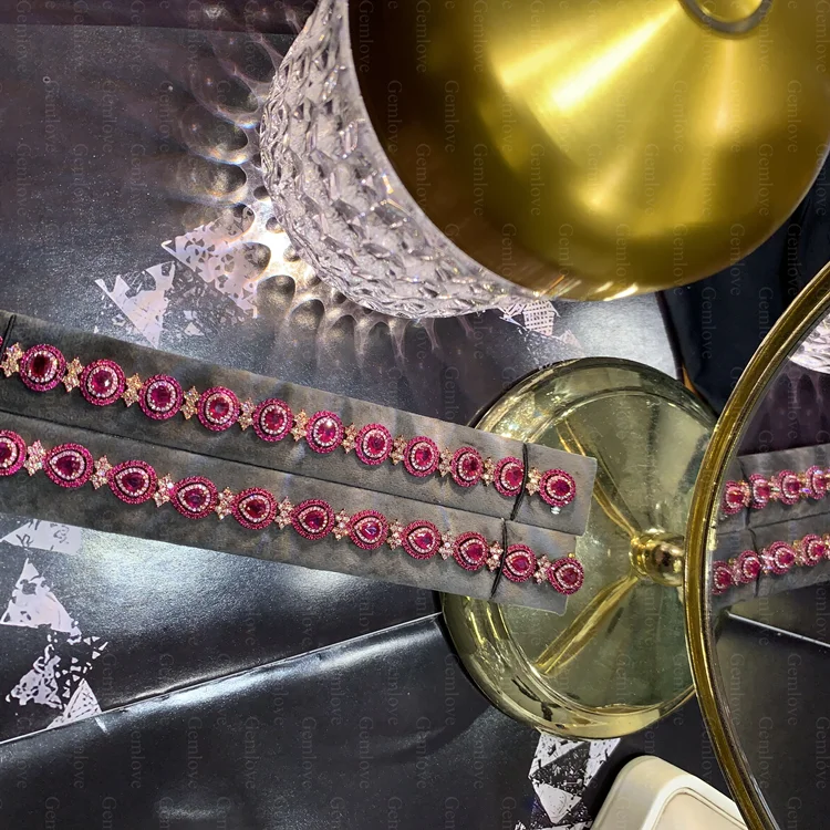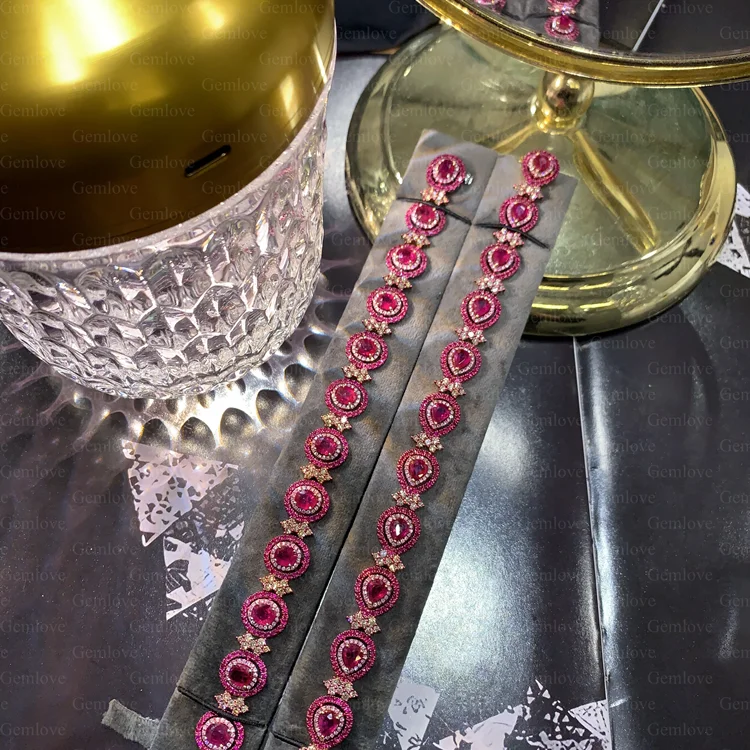 IGI-certified lab-grown round ruby, 3.42ct 18 gold Diamond ladies' bracelet, suitable for party occasions.