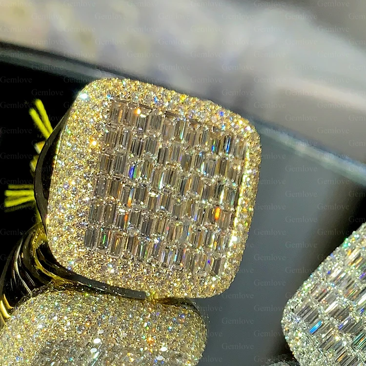 14K/18K gold luxury men's ring, set with 3.39-carat lab-grown emerald-cut diamond, suitable for high-end occasions