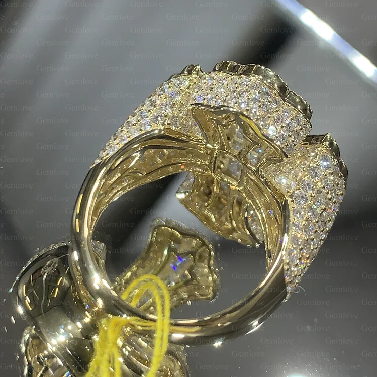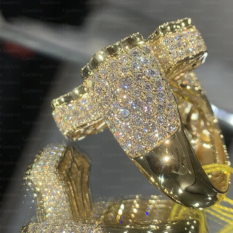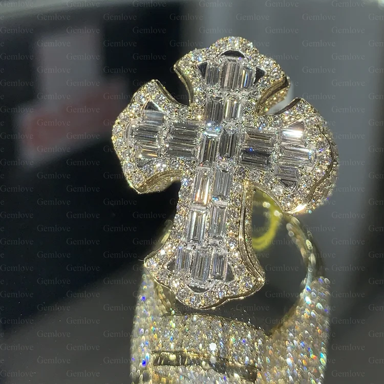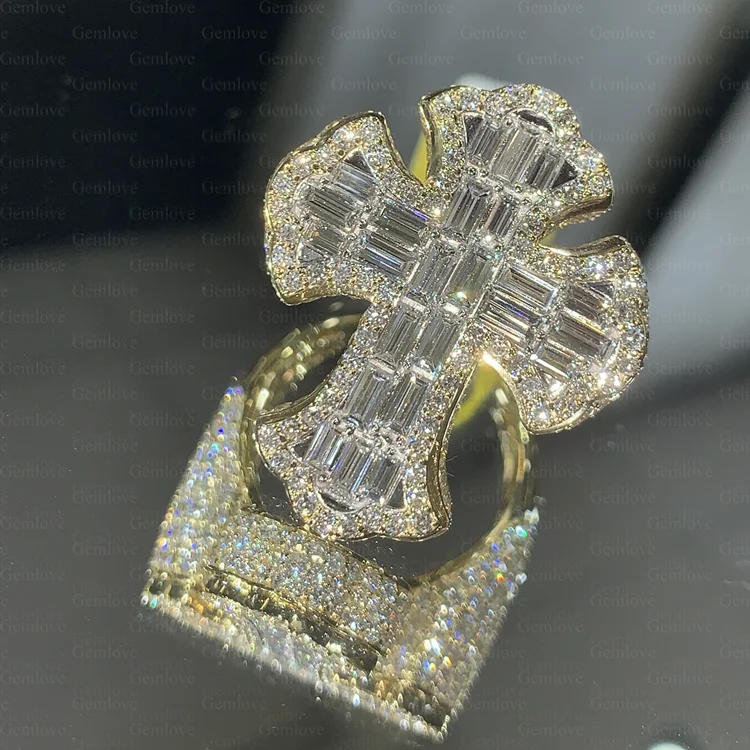 Hip-hop style 14K/18K gold cross ring for men, featuring a 1.94ct emerald-cut lab-grown diamond, perfect for parties.