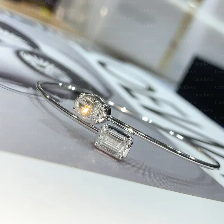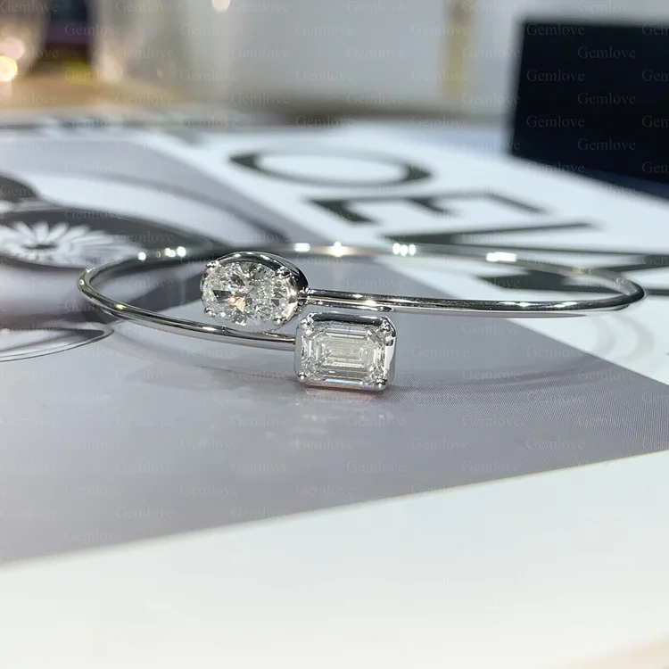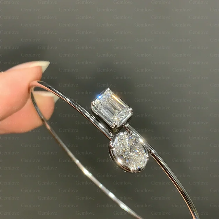 GEMLOVE Luxury Women's 14K White Gold Bracelet, set with lab-grown oval cut diamonds, perfect for everyday wear