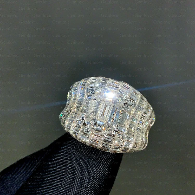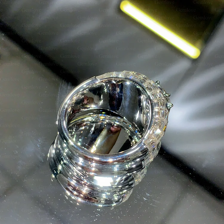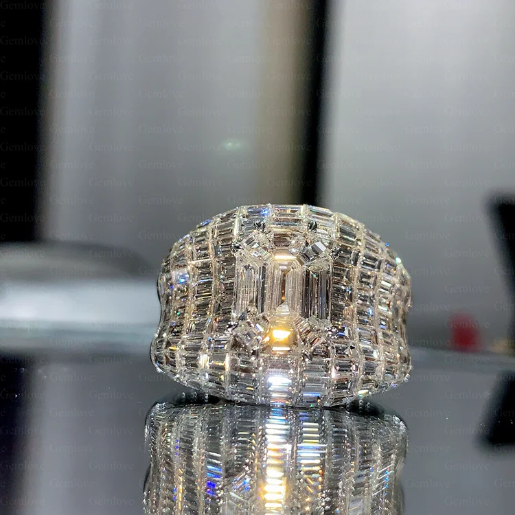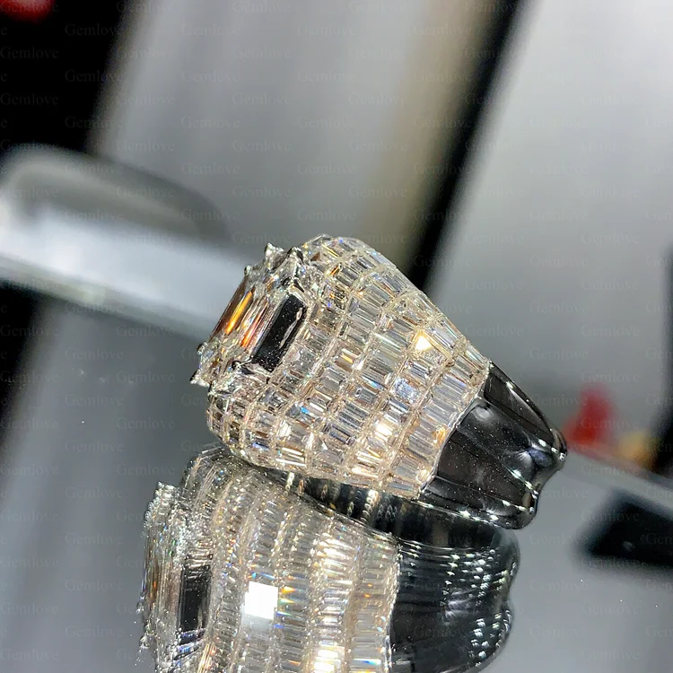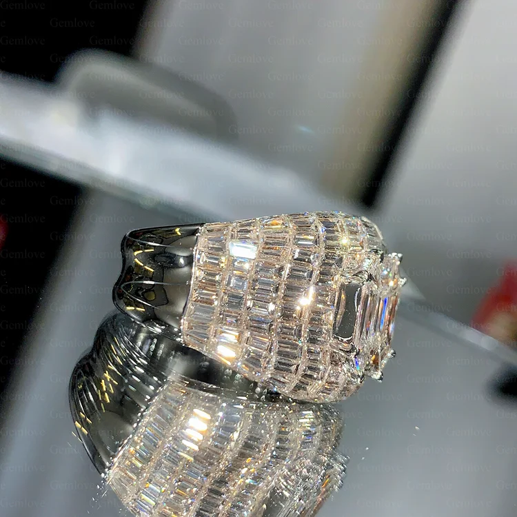 Luxury 18-carat white gold men's ring, set with a 1.4-carat lab-grown emerald-cut diamond, anniversary gift