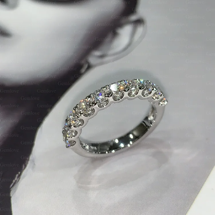 GEMLOVE 2.06 Carat White Gold Ladies' Eternity Ring, set with pave-set lab-grown round diamonds, everyday wear.