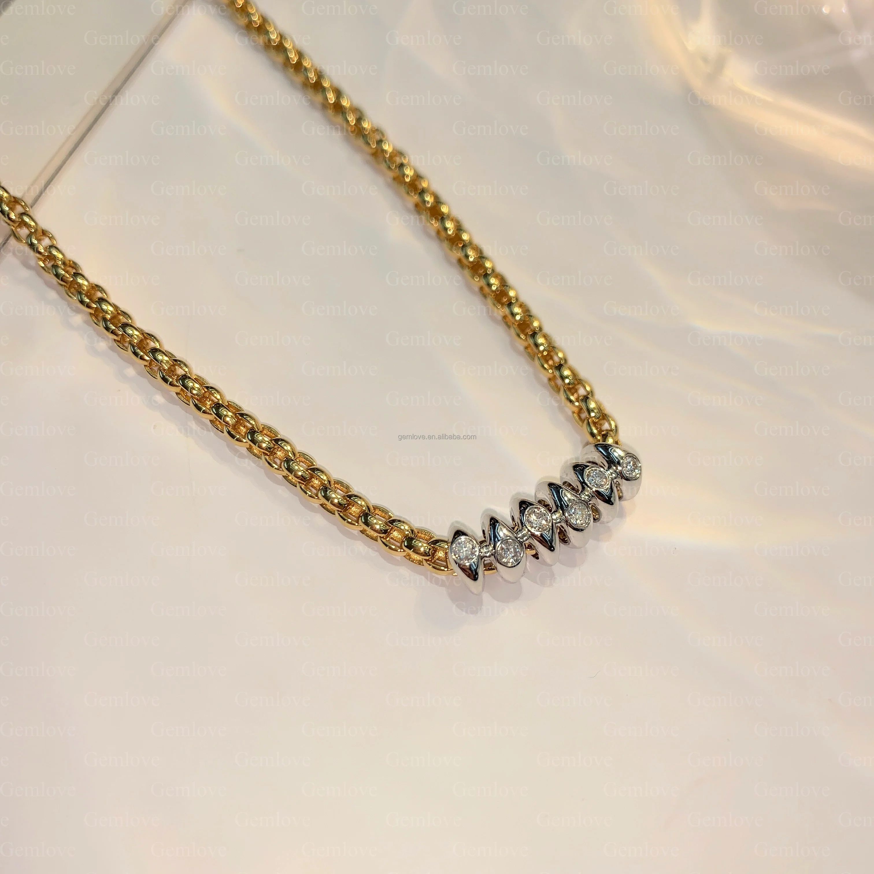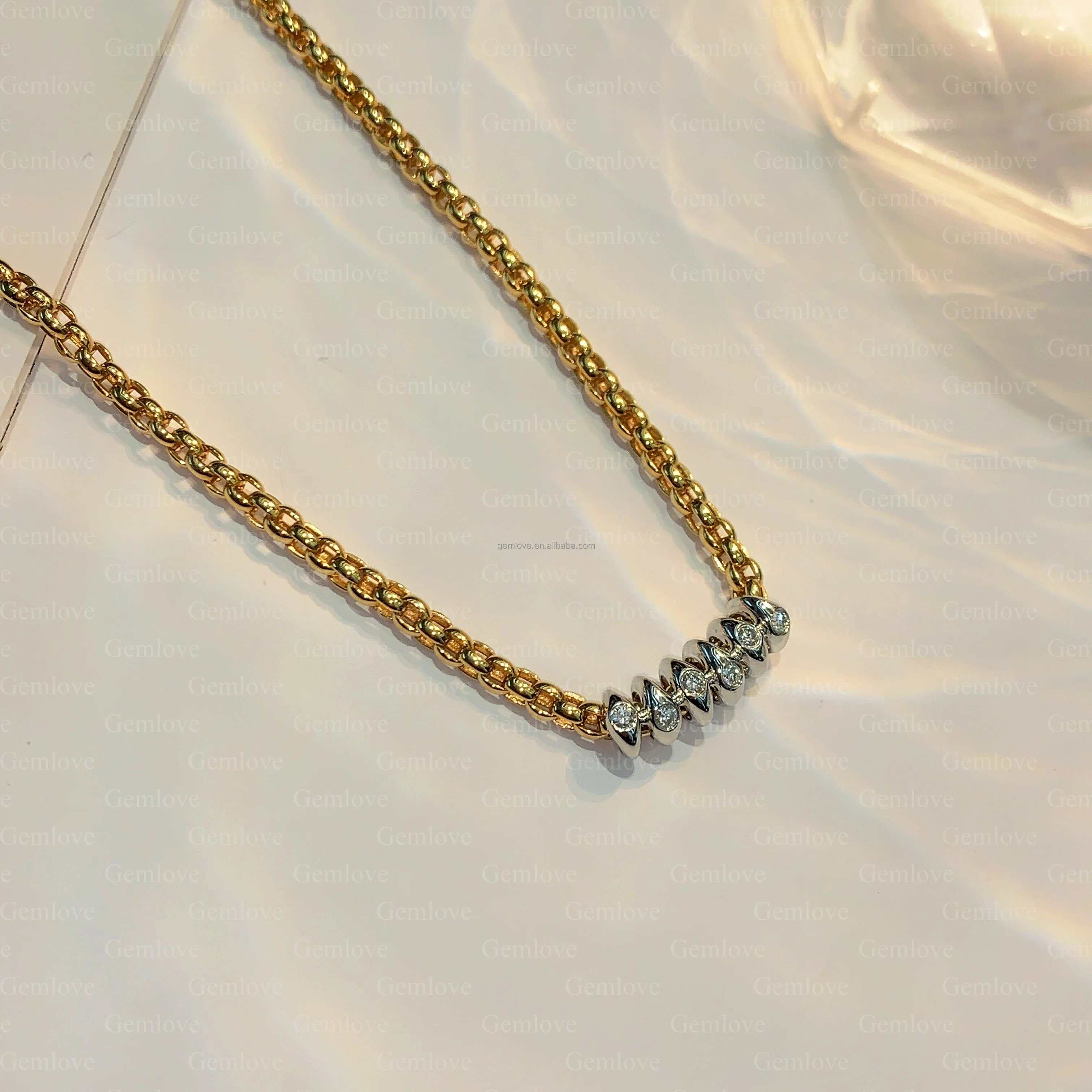 Fashion diamond pendant necklace with fishhook clasp, 18K gold lab-grown 0.223-carat round diamond hip-hop style jewellery