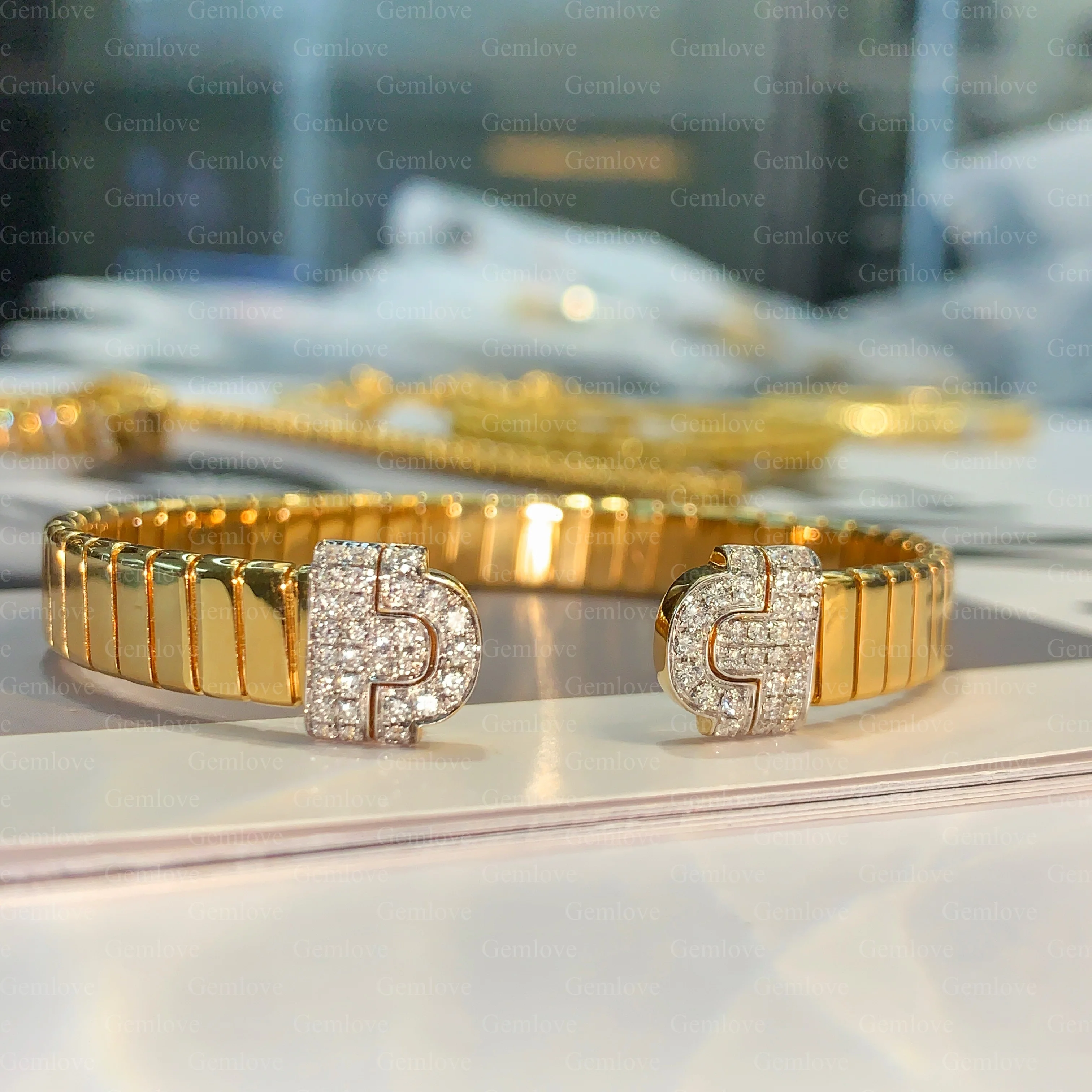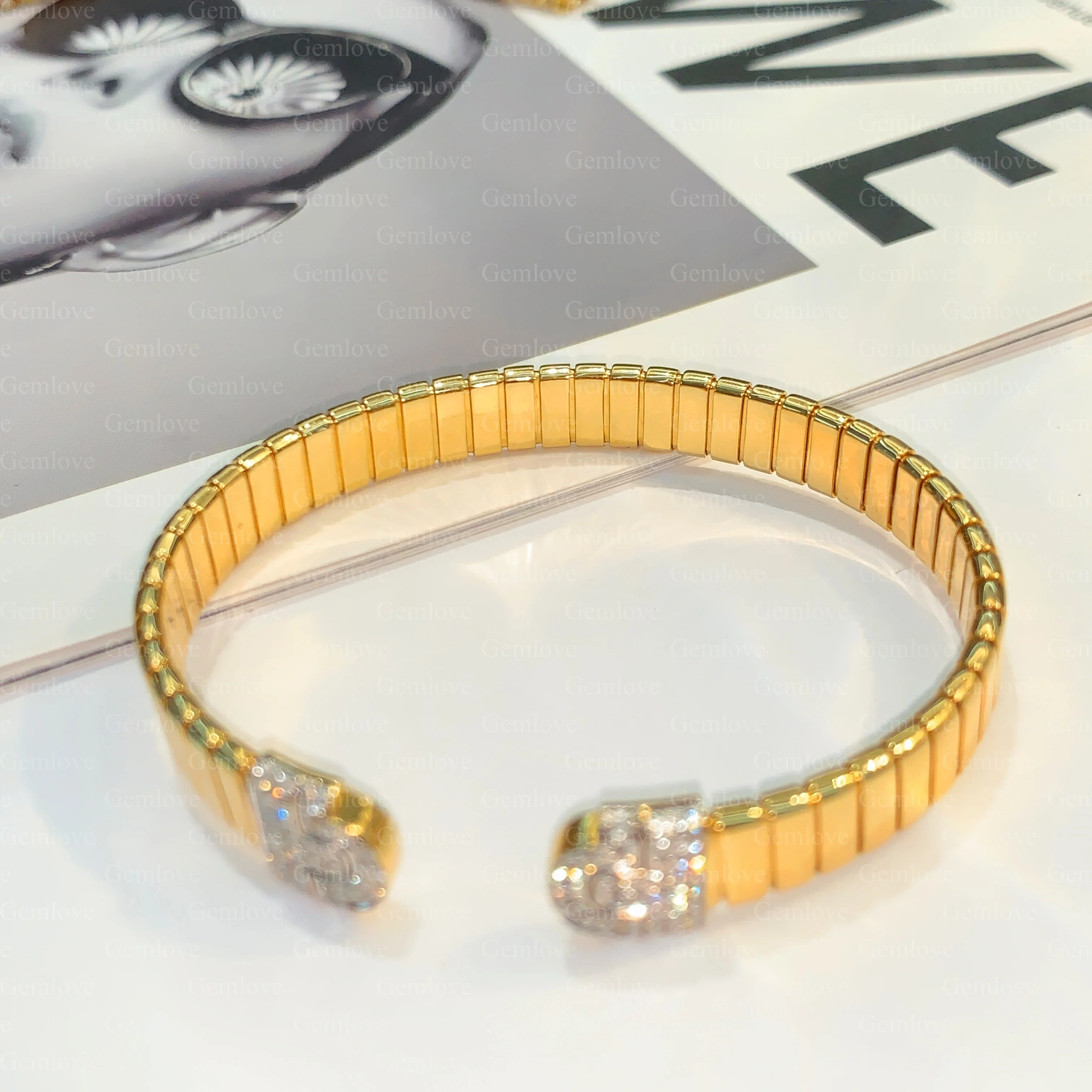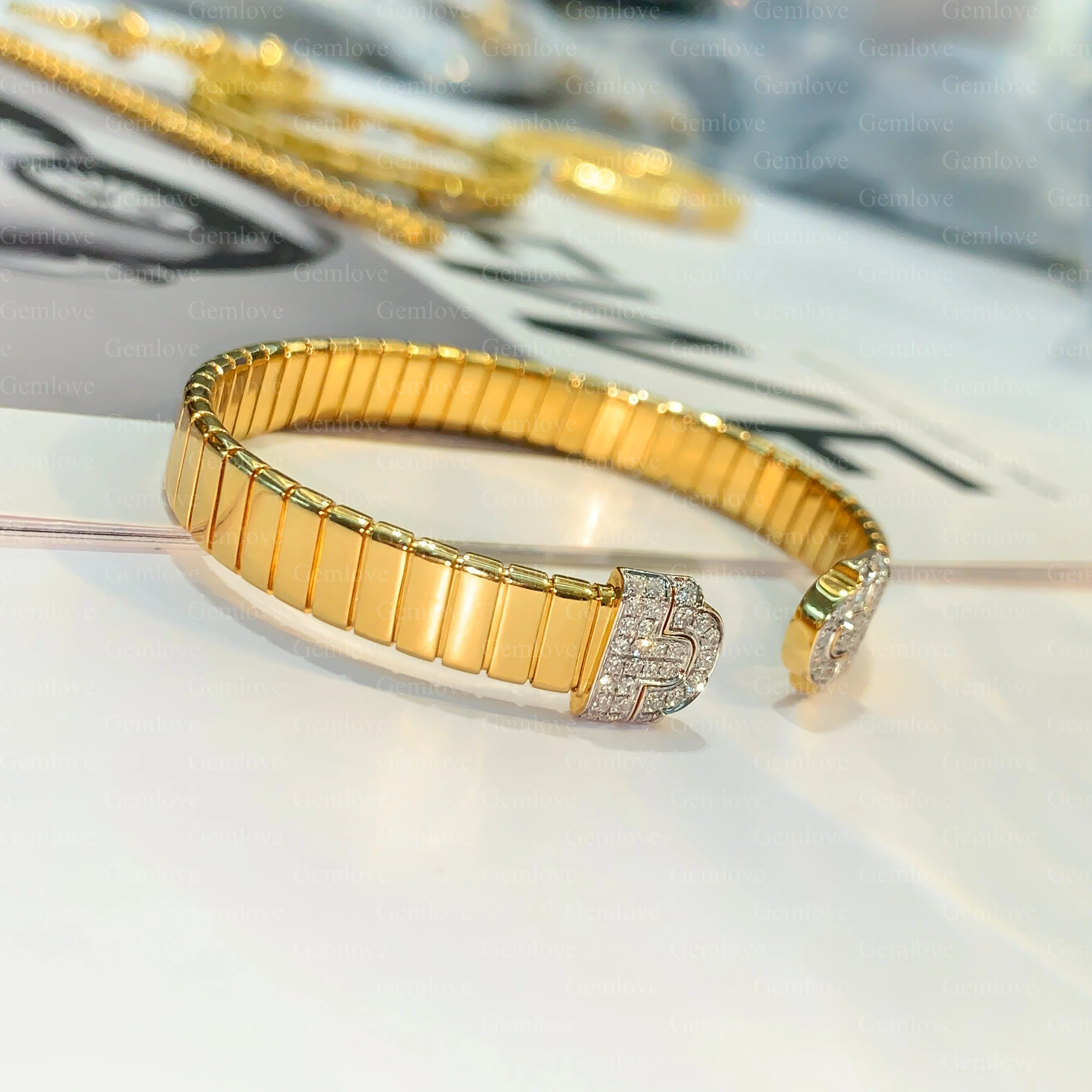 18-carat gold rectangular diamond Bangle, featuring a 0.683-carat lab-grown round diamond, ladies' anniversary gift