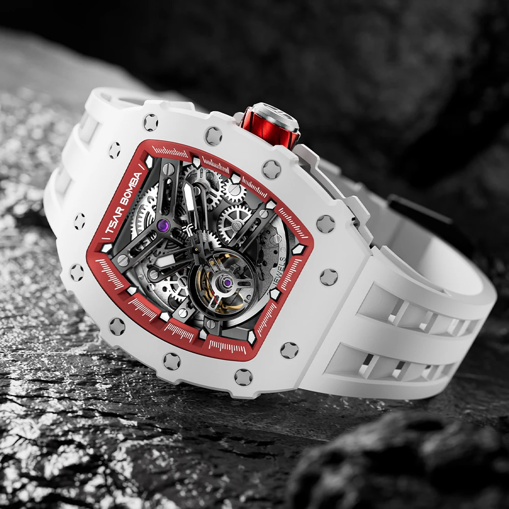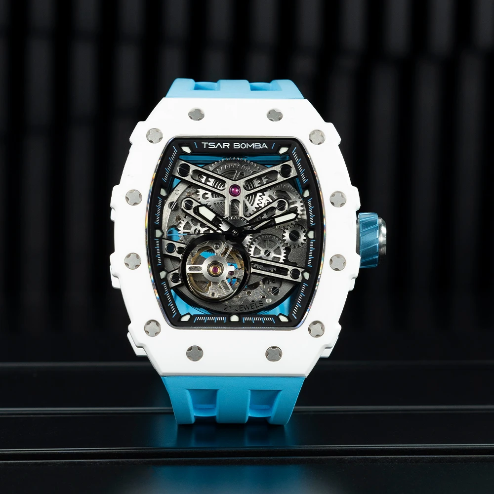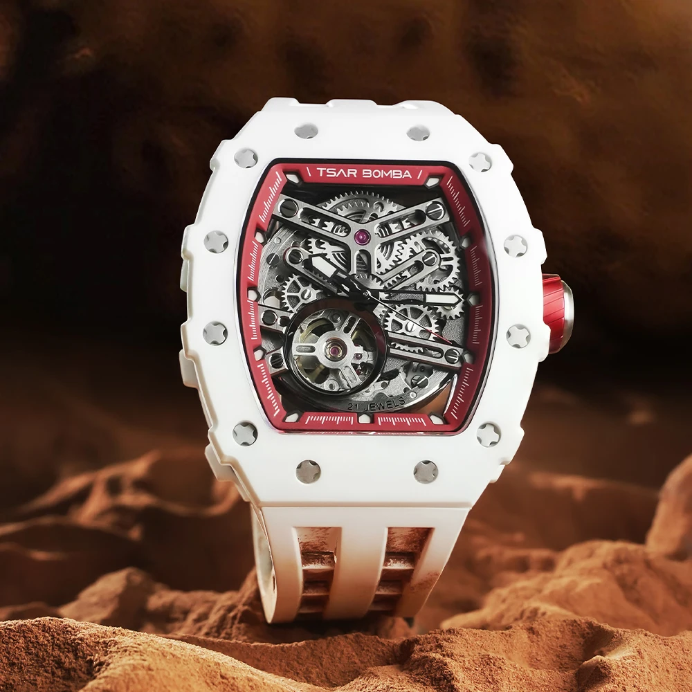 For MIYOTA Automatic Mechanical Men's Luxury Wristwatch Ceramic Case Tonneau Shape Rubber Band Water Resistant Analog