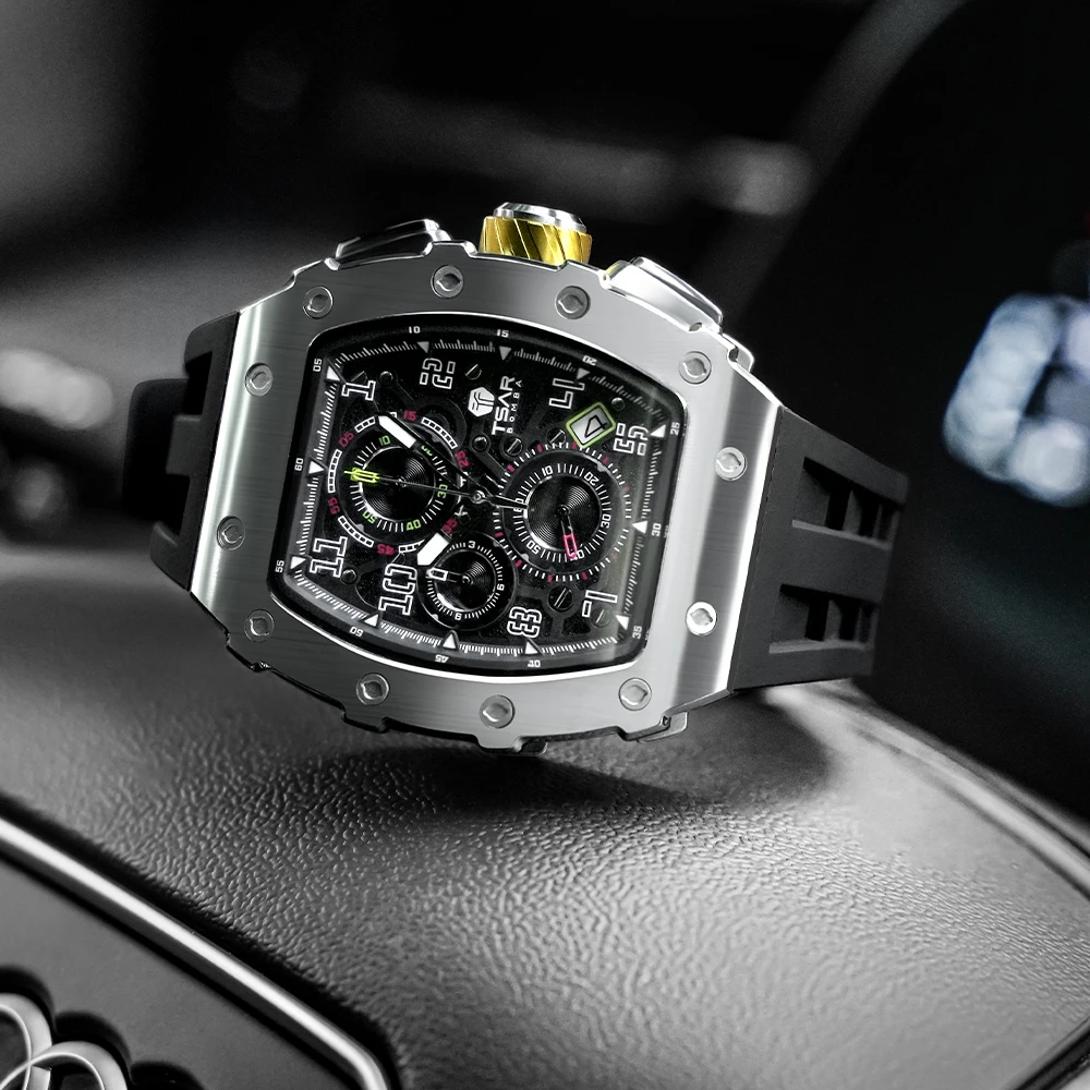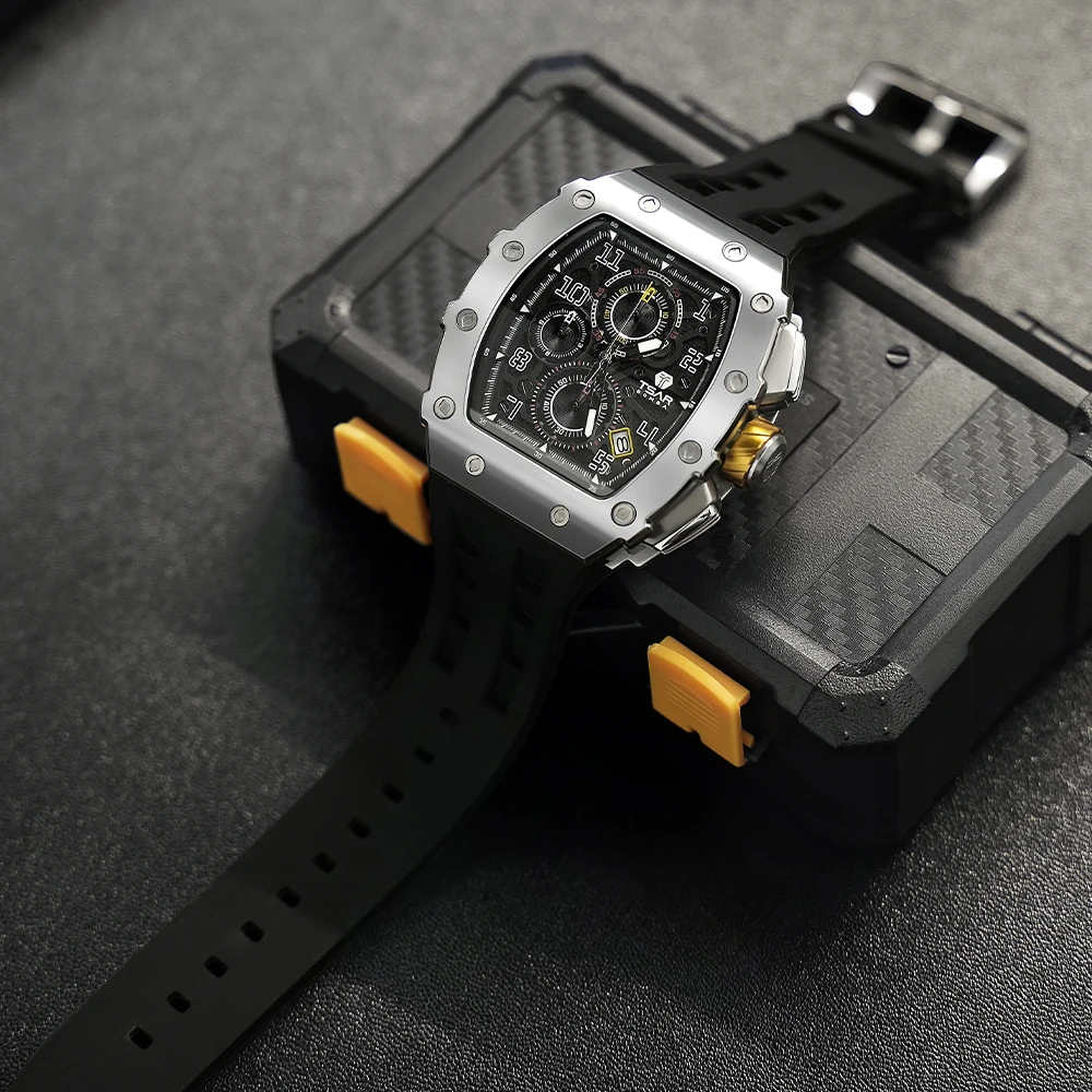 TSAR BOMBA Luxury Quartz Sport Watches for Men Factory Wholesale Tonneau Silicone Band Fashion Business Style