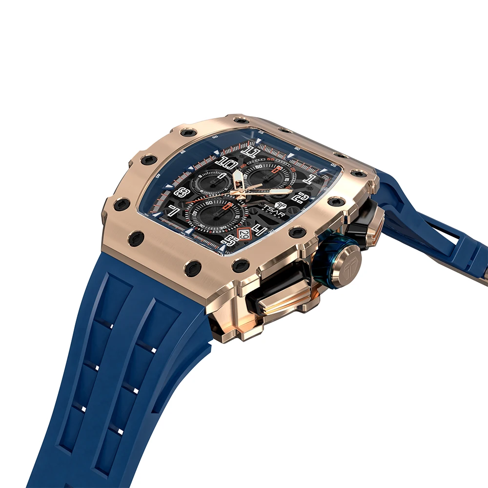 OEM Custom Business Watch with Sapphire Crystal Glass Silicone Band Quality Level Gold Supplier Sport Fashion Style for Men