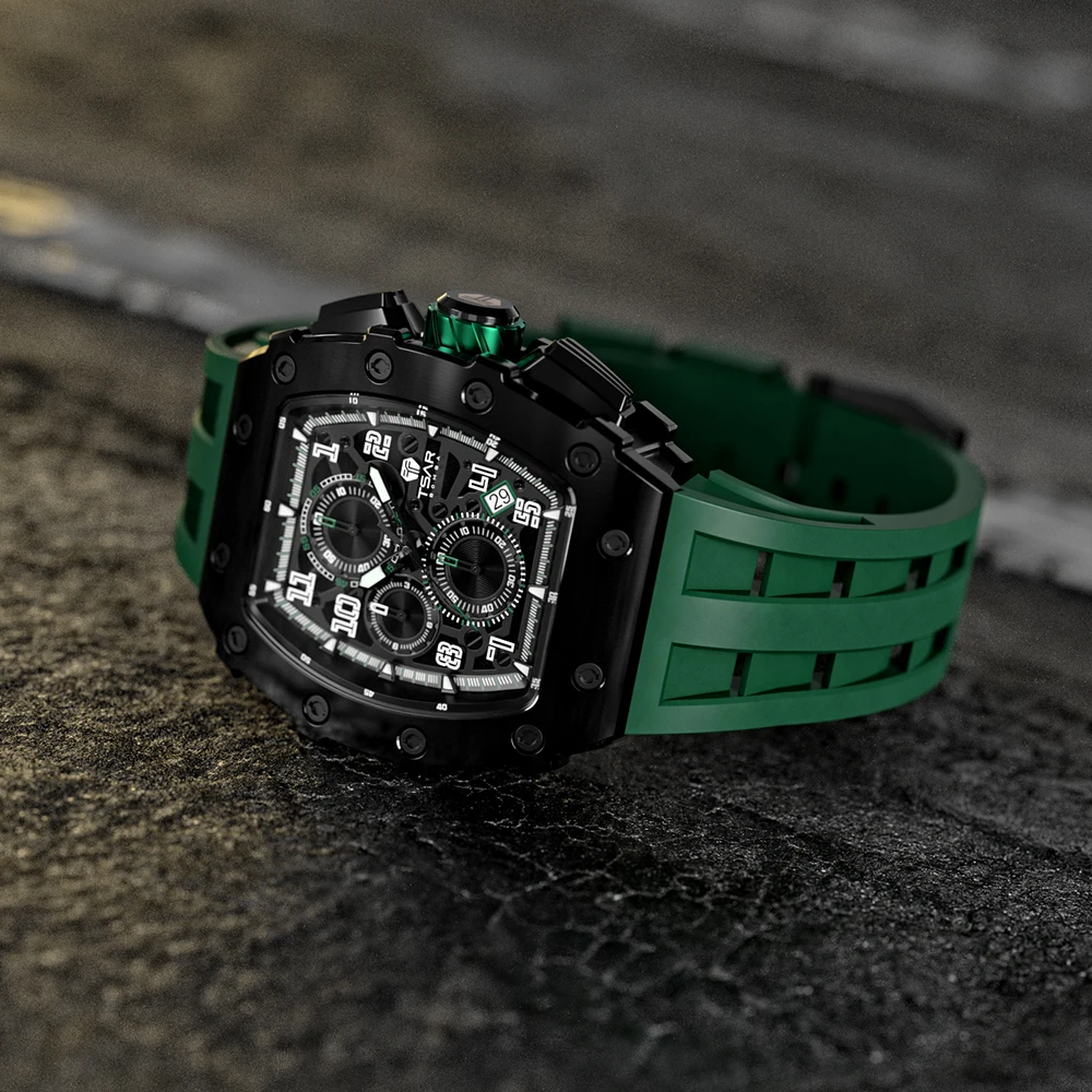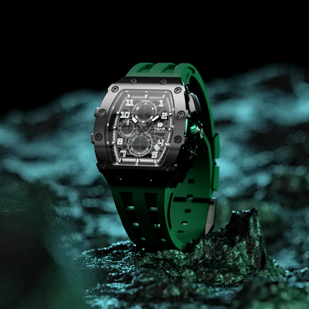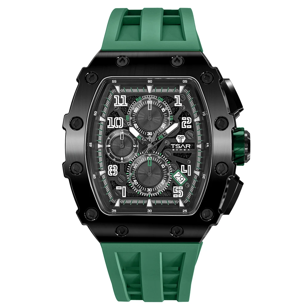 Luxury Men's Tonneau Wrist Watch with SEIKO Quartz Movement 18mm Silicone Band-Hot Sale Fashion Item for Dropshipping