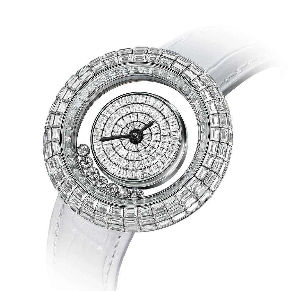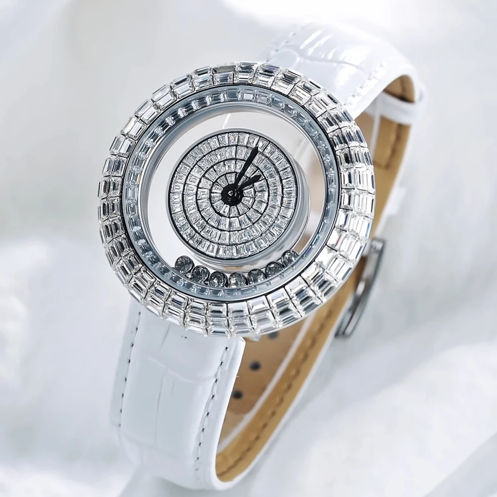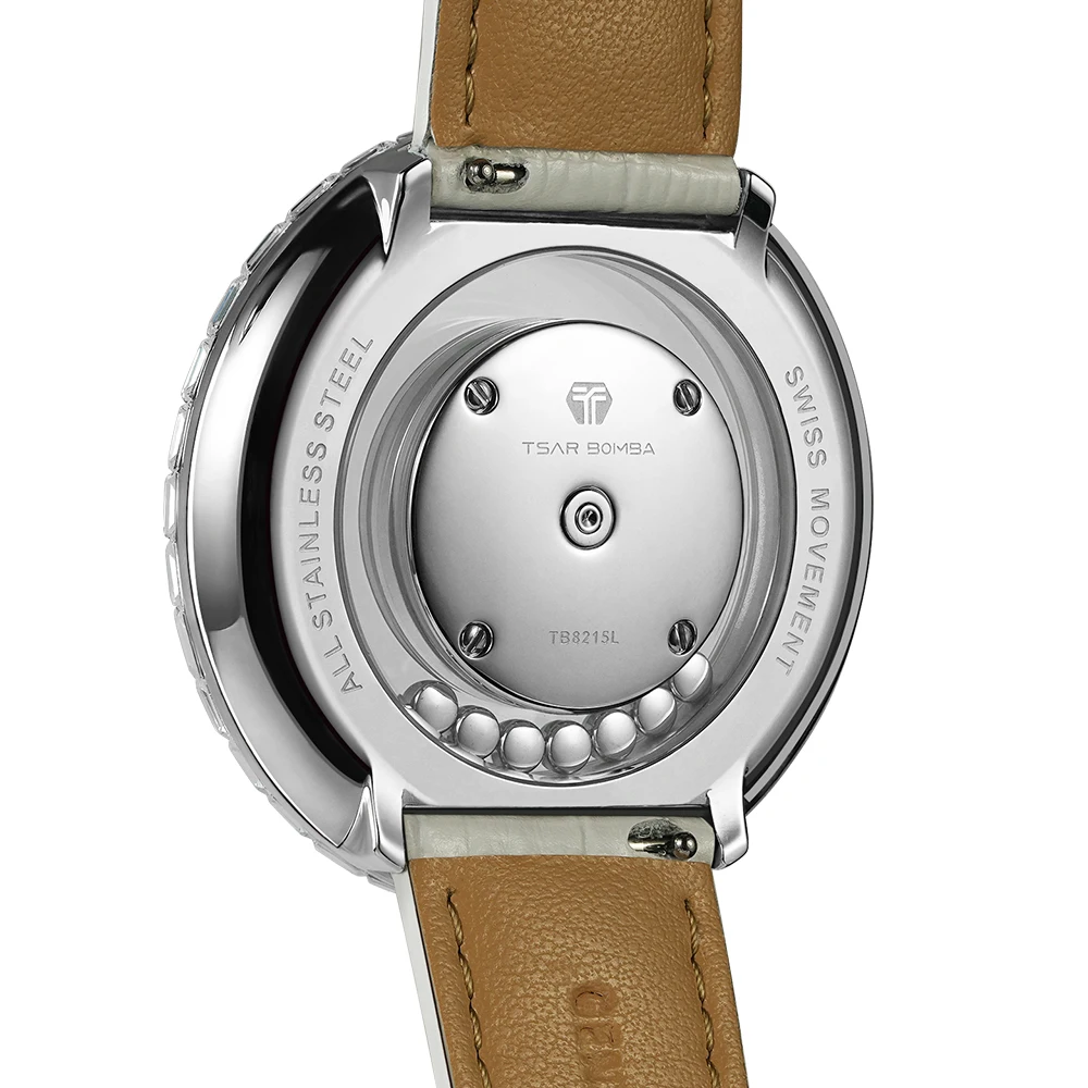 TSAR BOMBA Women's Fashion Crystal Watch with Diamond 20mm Leather Band Ronda Movement