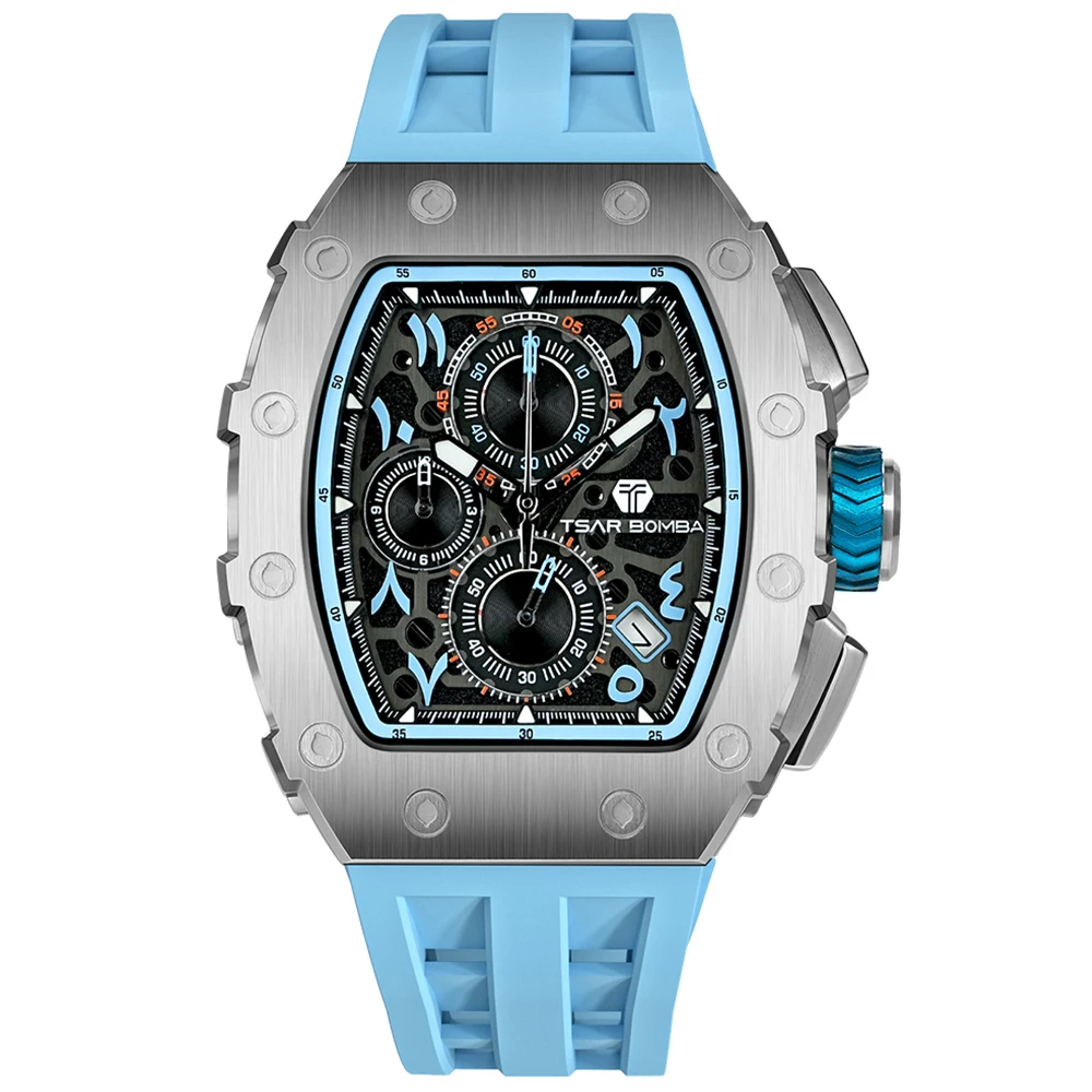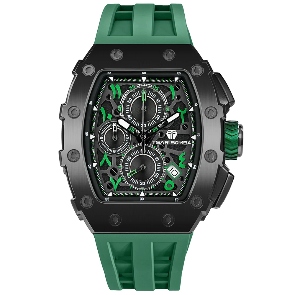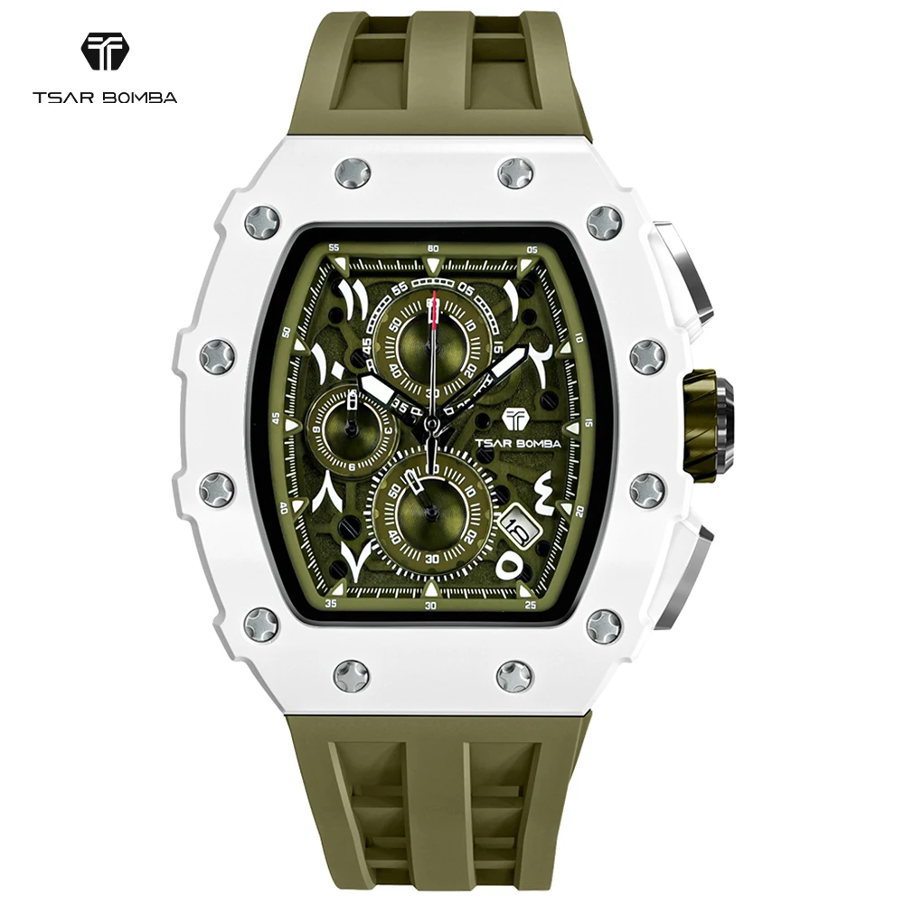 TSAR BOMBA TB-8204 Men's Fashion Quartz Watch with Arabic Numerals Dial 43mm Diameter Silicone Band