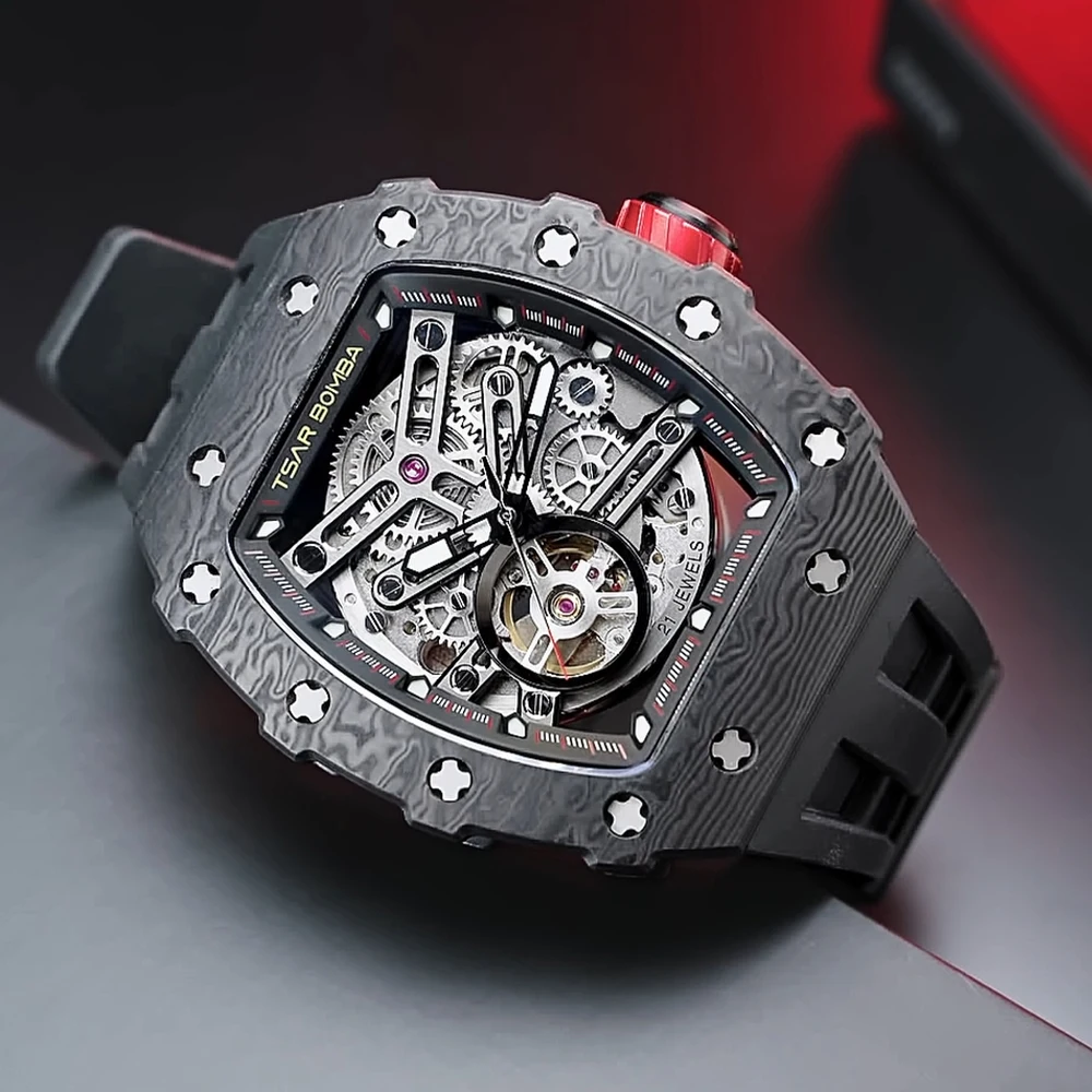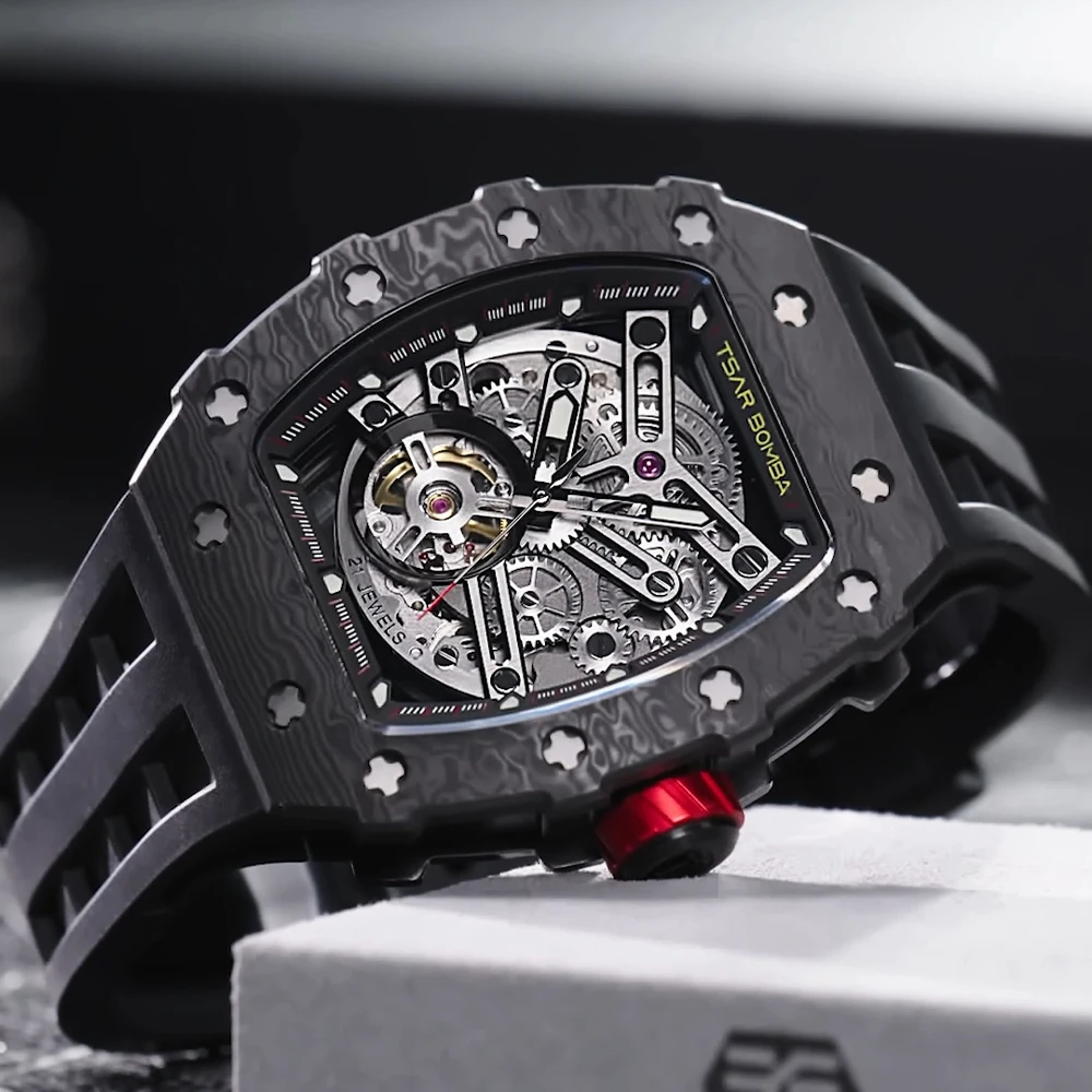 For TSAR BOMBA Factory Direct Men's Mechanical Analog Wristwatches Water Resistant Tonneau Case and Rubber Band