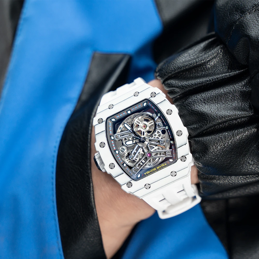 2023 Hot Sale for TSAR BOMBA TB8208 Carbon Fiber Automatic Men's Watch Miyota Movement Water Resistant Tonneau Case Rubber