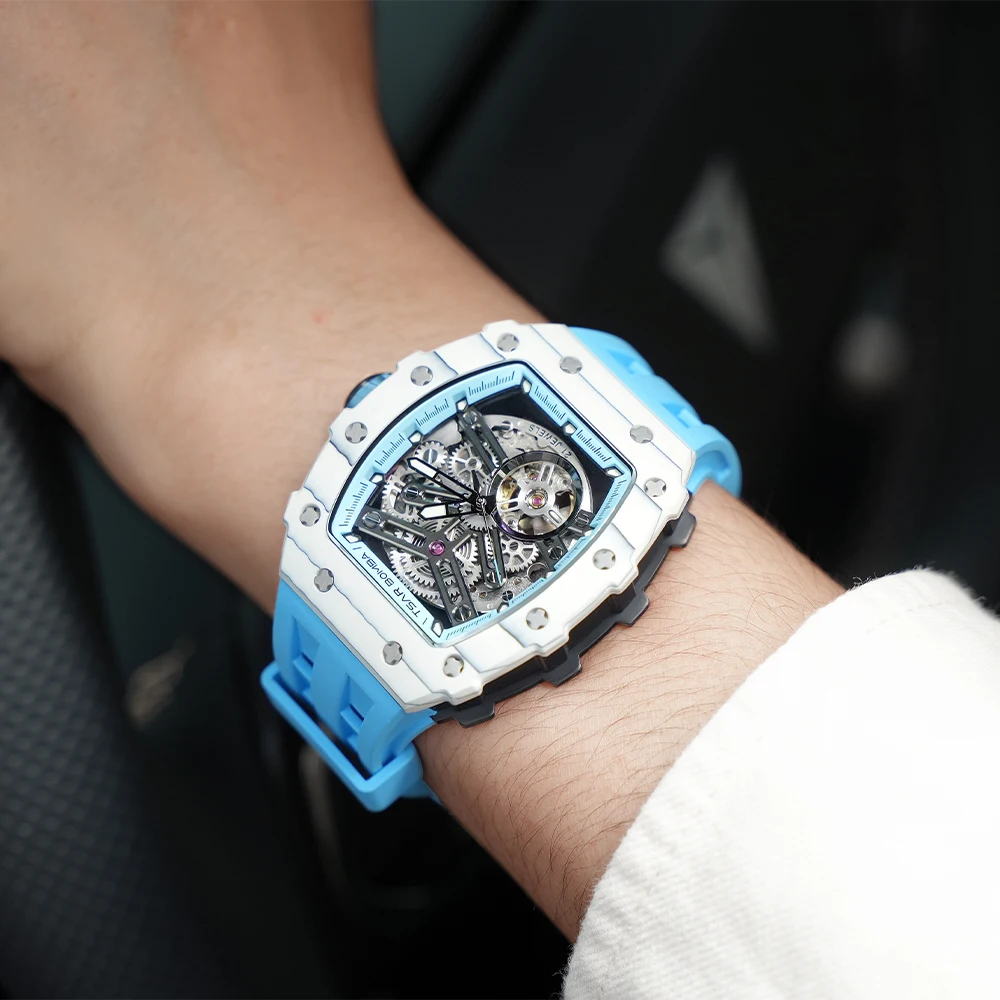 Men's Waterproof Mechanical Wrist Watches with Automatic Japanese Movement Carbon Fiber Bezel Silicone Strap Analog Dial Display