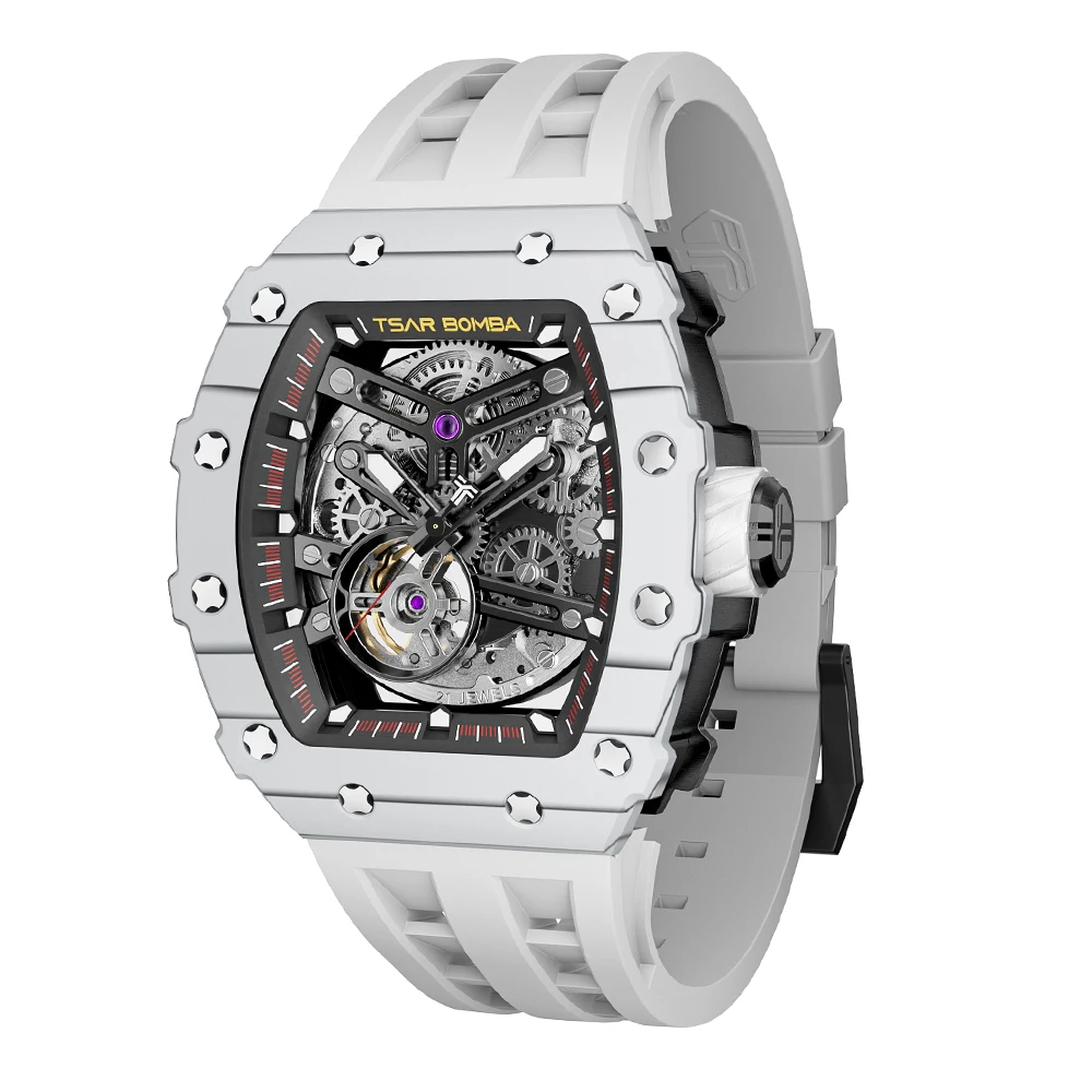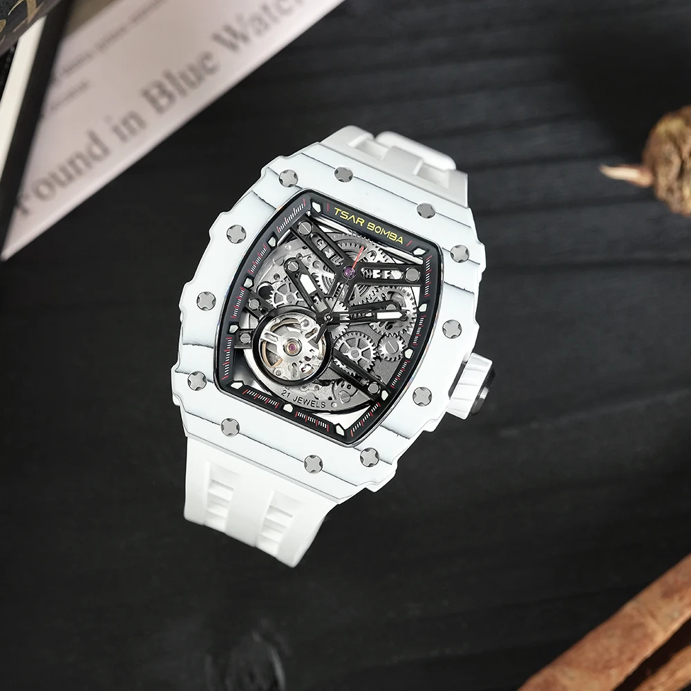 For Luxury Miyota Automatic Limited Edition Wristwatch for Men White Water Resistant Analog Carbon Fiber Case Rubber Band