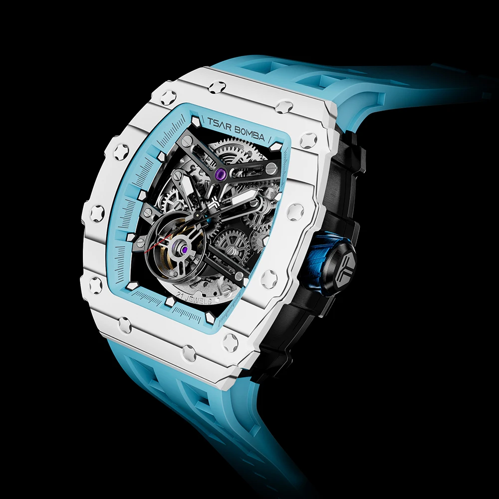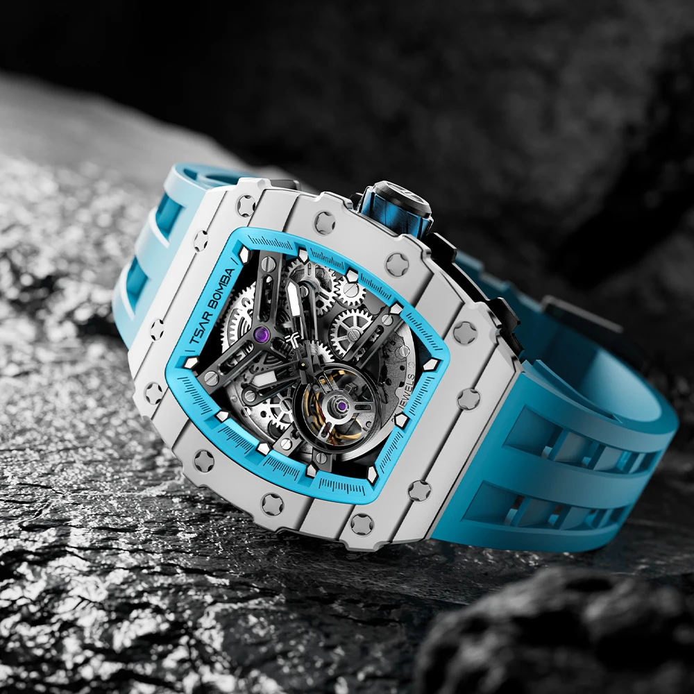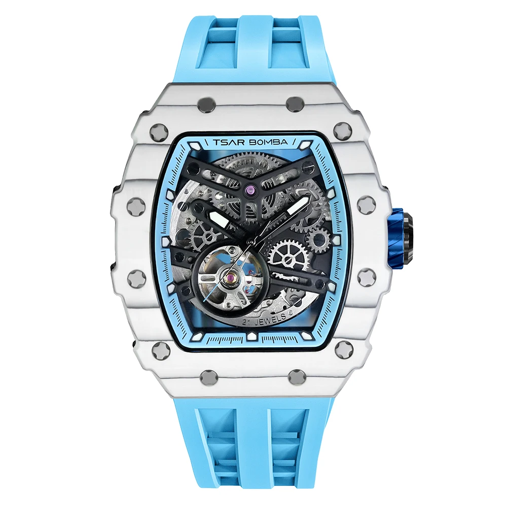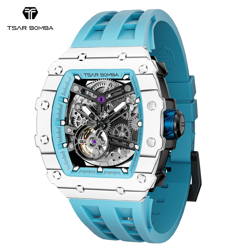 For Tonneau Skeleton Stainless Steel Automatic Analog Watch for Men Business Luxury