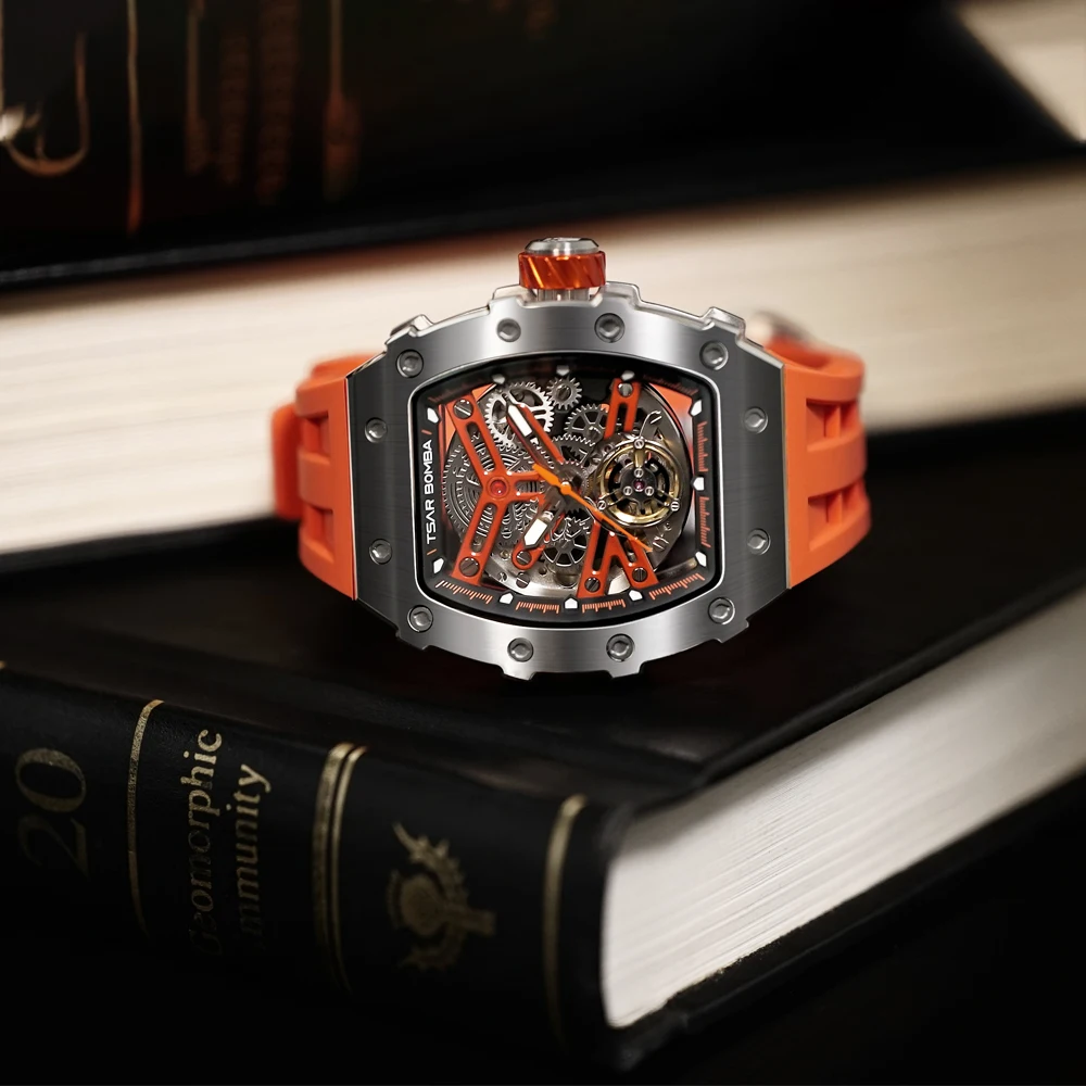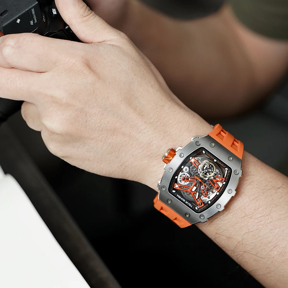 Elegant Automatic Men's Watch Quality Luxury Brand Wristwatches Miyota Movement Carbon Fiber Case Tonneau Shape Silicone Analog
