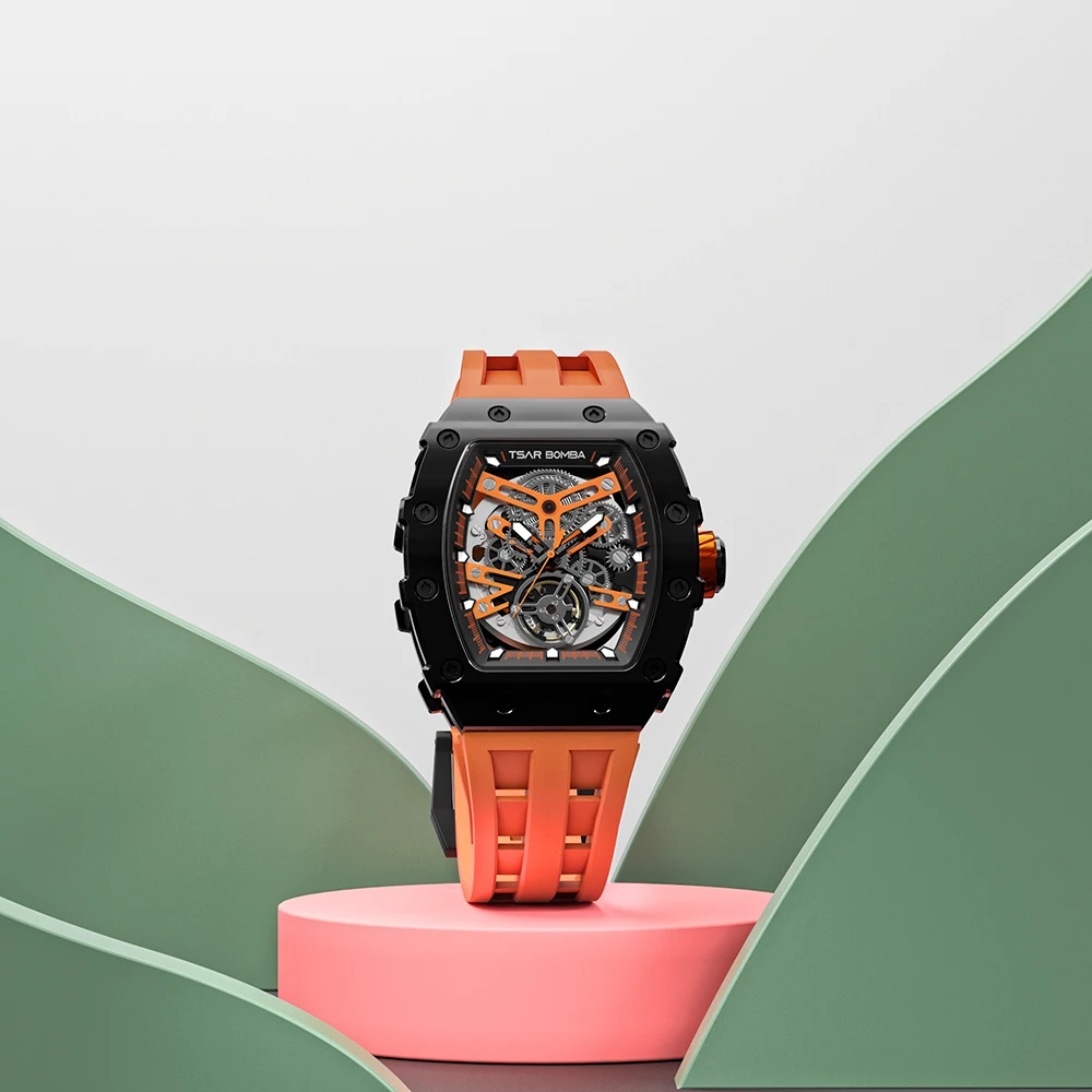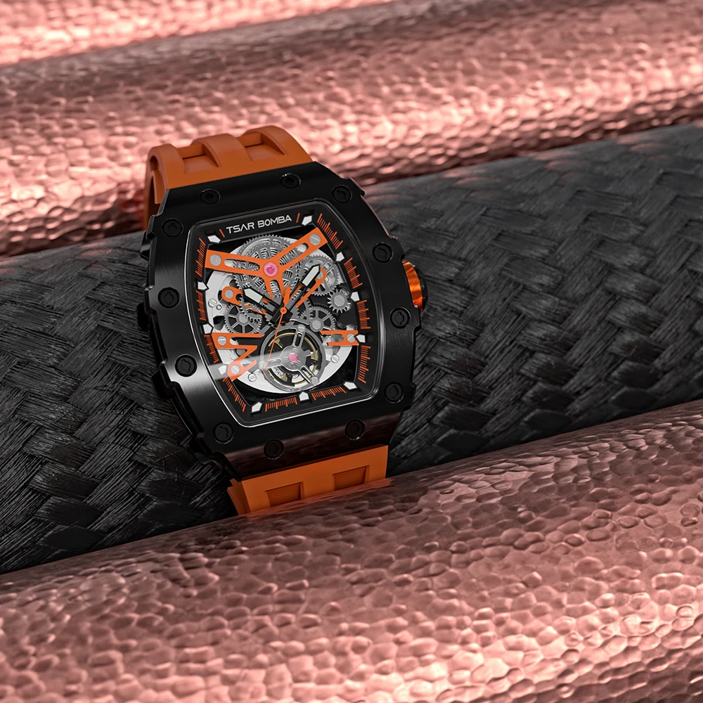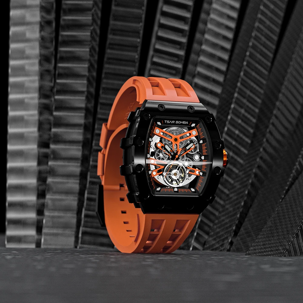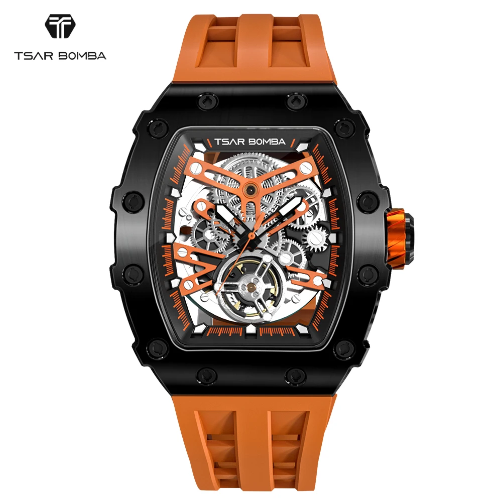 For TSAR BOMBA Luxury Men's Watch with Skeleton Dial Automatic Mechanical Movement Miyota Brand Water Resistant Analog Display