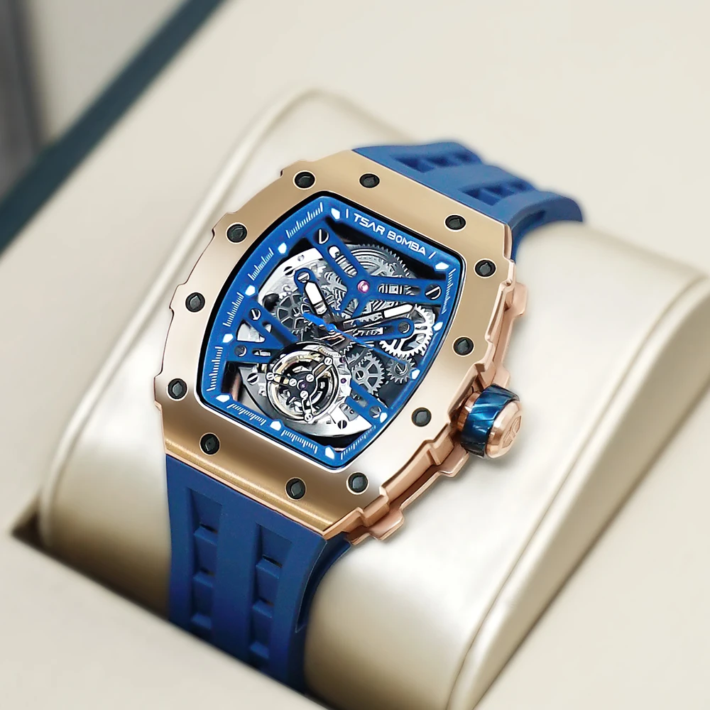 Top Brand Luxury Rose Gold Automatic Mechanical Watch for Men Water Resistant Analog Dial with Tonneau Case Miyota Movement