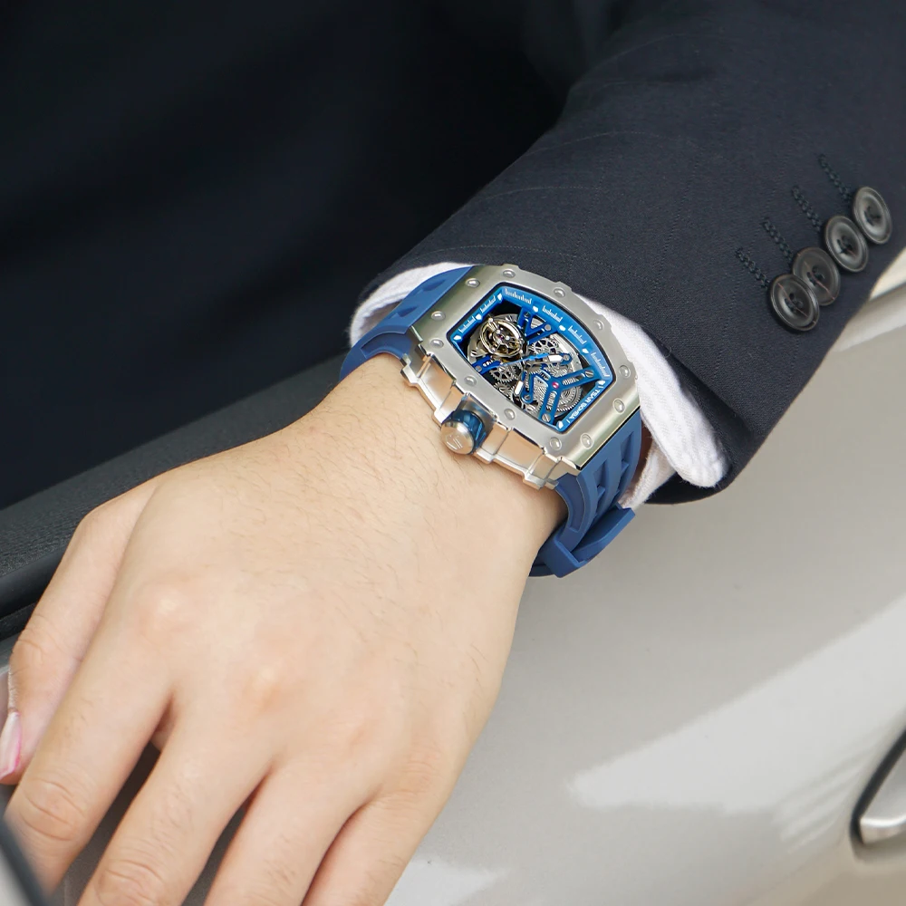 TSAR BOMBA Mechanical Watches for Men Sapphire Tonneau Wristwatch Skeleton Blue Clock Fashion Luxury Mens Automatic Watch