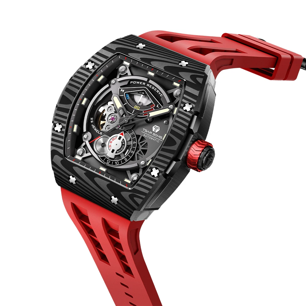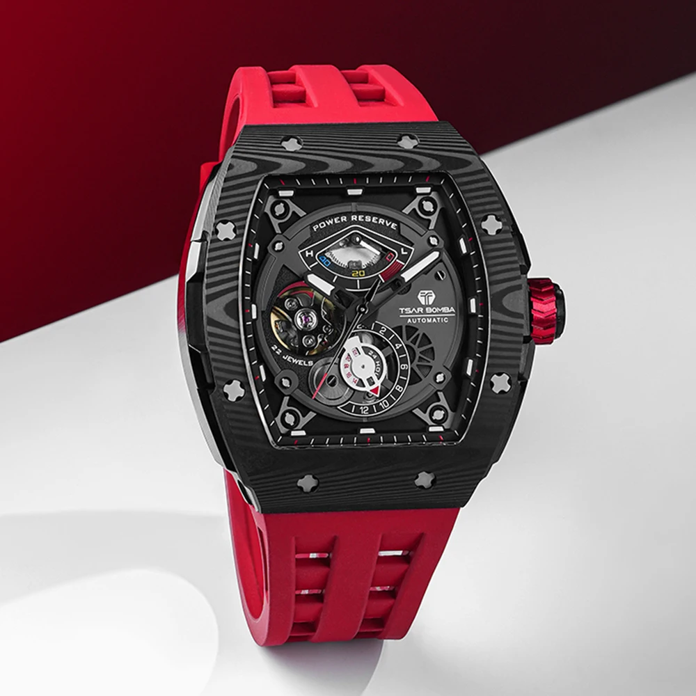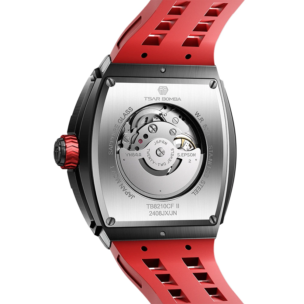 For TSAR BOMBA TB8210 Luxury Automatic Mens Wristwatch Mechanical Analog Dial Display with Tonneau Case and Rubber Band for Men
