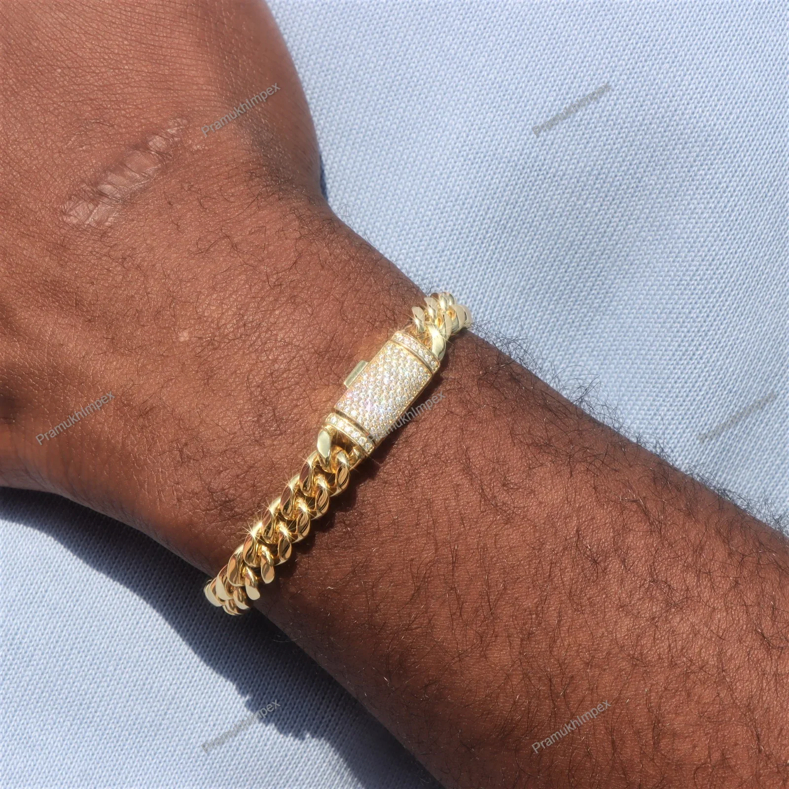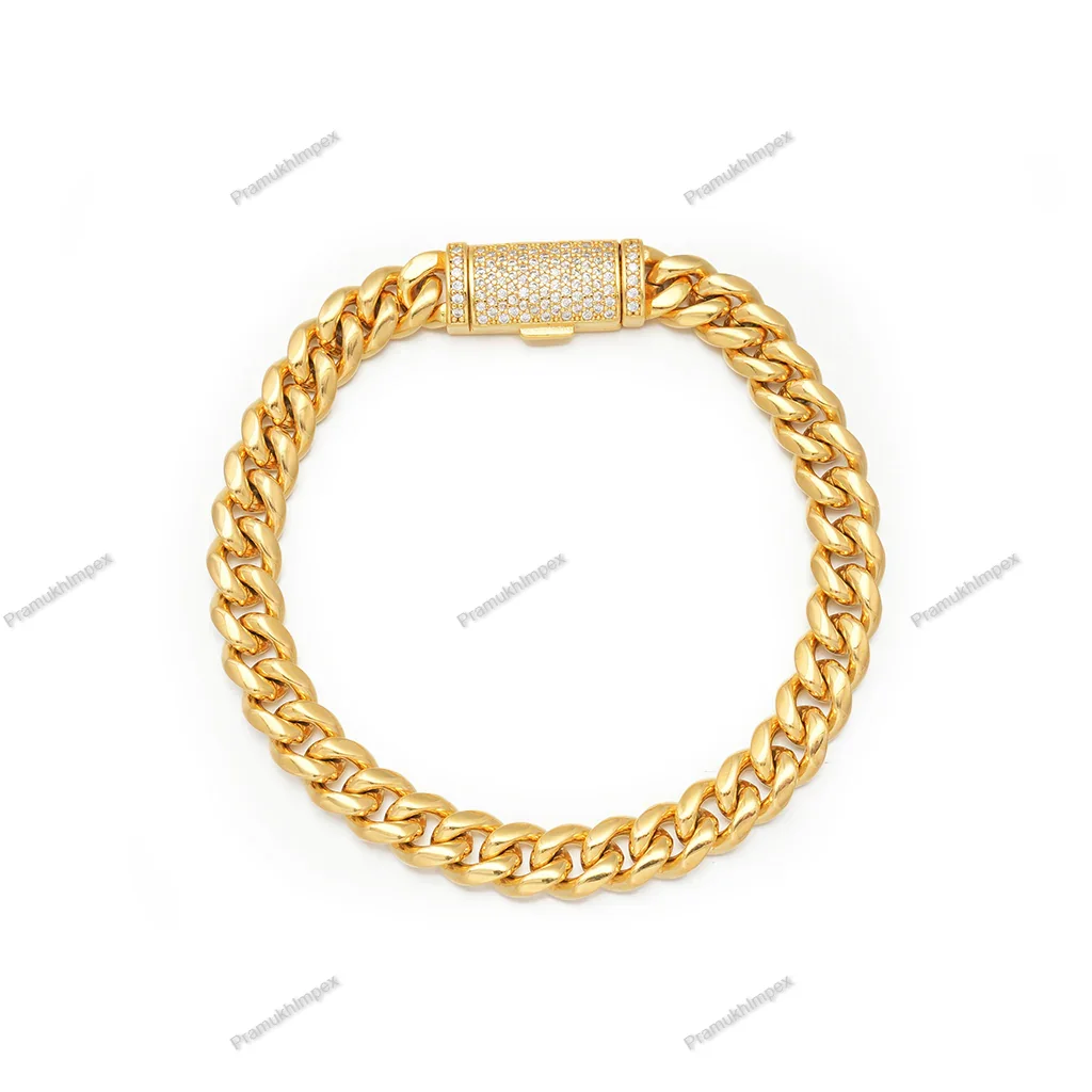 Custom Order Gold Yellow Plated Plain Miami Cuban Hip Hop Bracelet Sterling Silver High-quality Anniversary