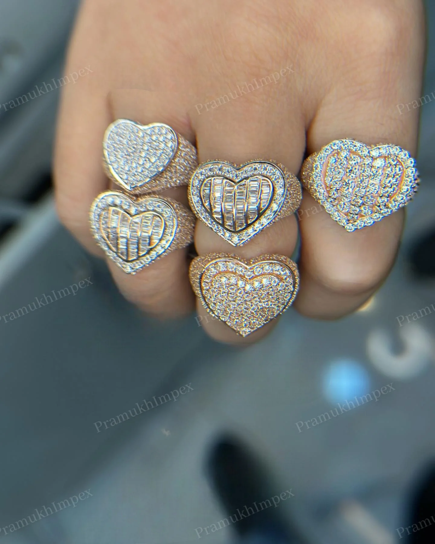 High Quality Solid Gold Plated Prong Set Heart Shape Moissanite Sterling Silver Hip Hop Customized Ring GRA Certified Best Gift
